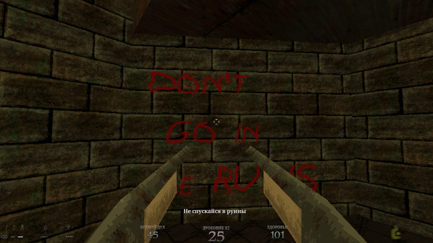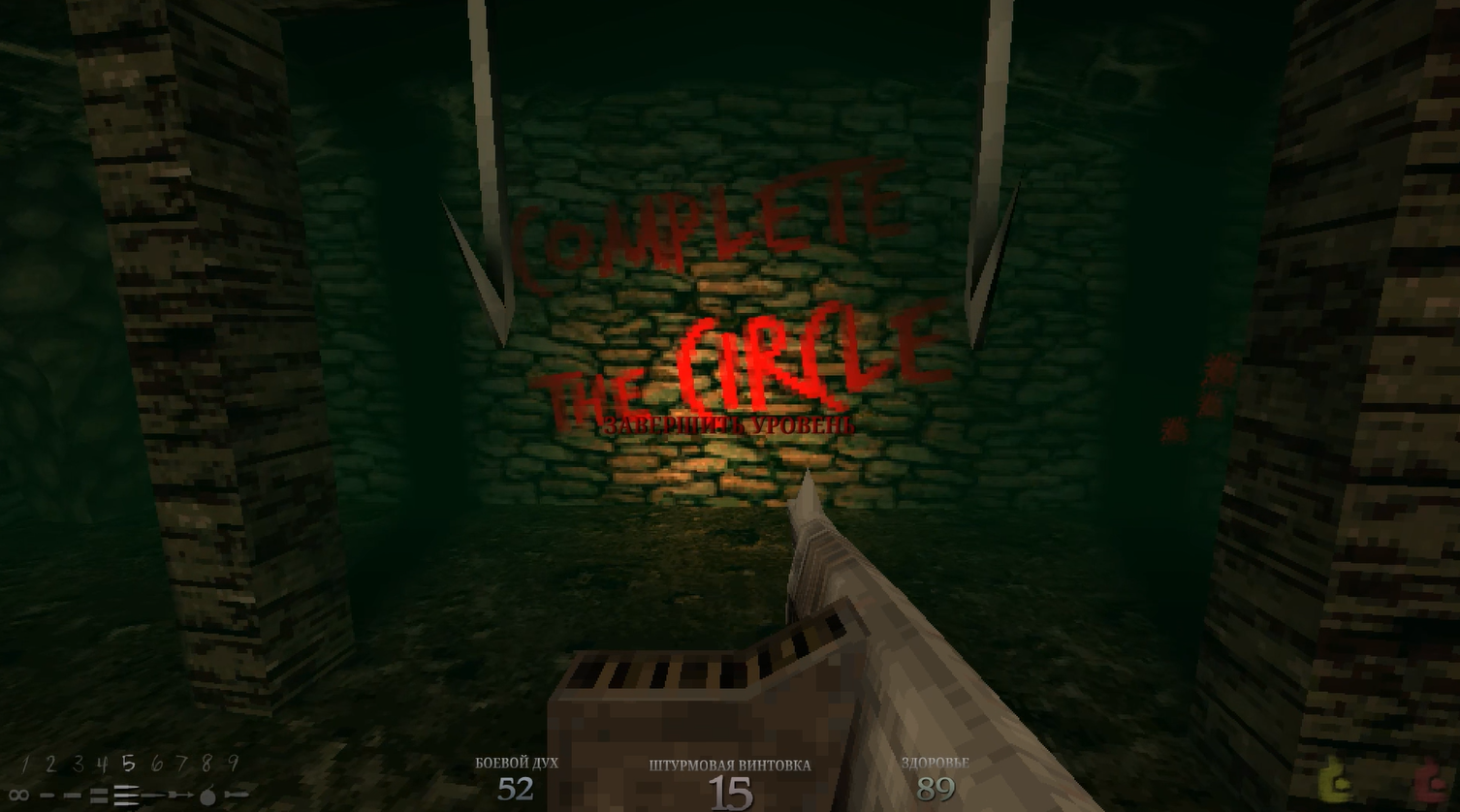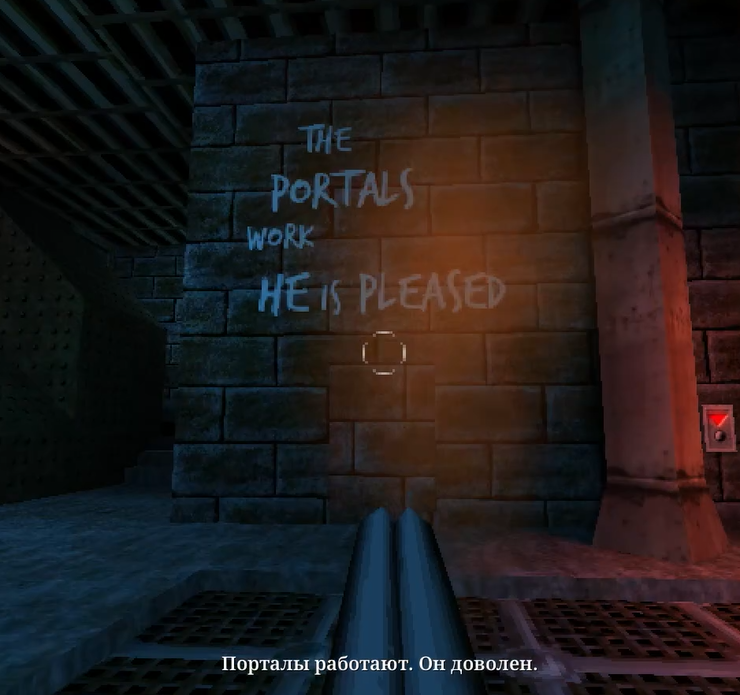 На локациях то тут, то там мы будем замечать надписи. Пока что выглядят они просто как культистский бред: типичная церковная хрень, которые поехавшие, поклоняющиеся какому-то древнему богу, обычно пишут. Но я гарантирую, эти надписи рано или поздно станут более зловещими и дискомфортными.