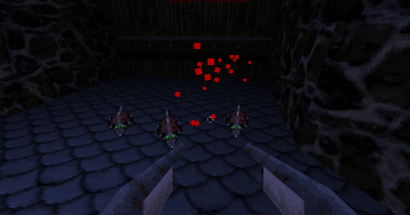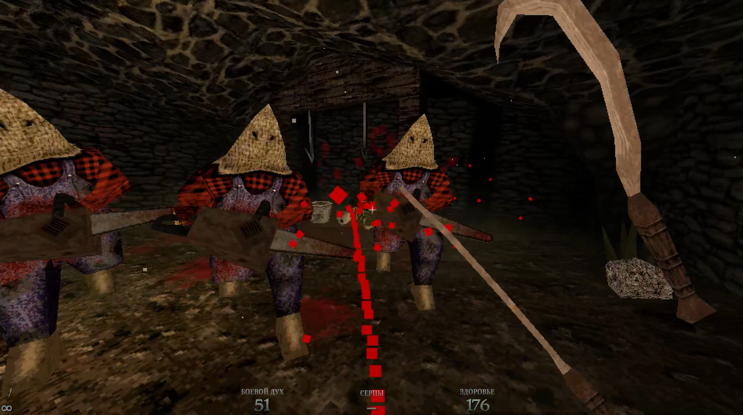 Собственно, игра и начинается схожим образом с Doom 2016ого года: мы освобождаемся из оков и незамедлительно навешиваем тумаков оказавшимися поблизости противникам. Вот только если Думгай просто был прикован цепями и молотил врагов кулаками, то главный герой Dusk совершенно неожиданно сразу сходу получает оружие: два мясных крюка. И мы быстро понимаем, что он был на этих крюках подвешен, и вынул он их из своей спины. Нейтан Эксплоужен эту сцену писал, не иначе.