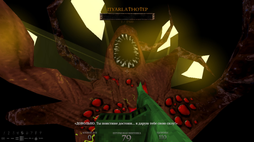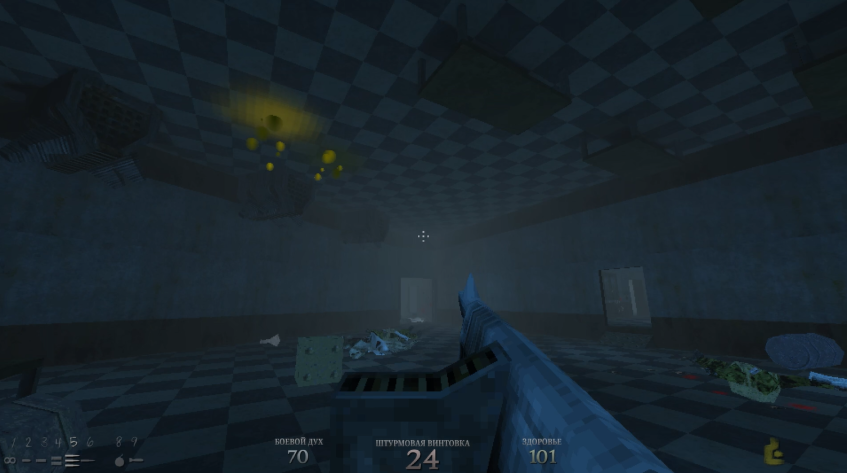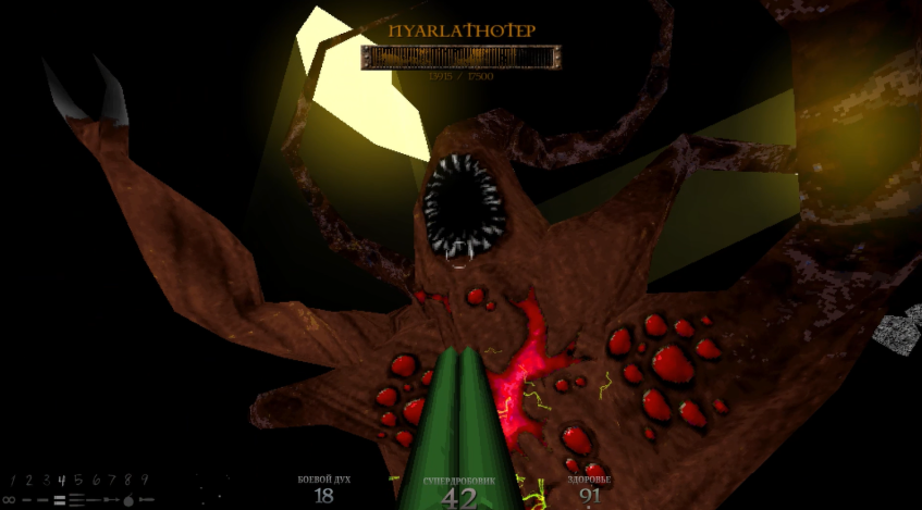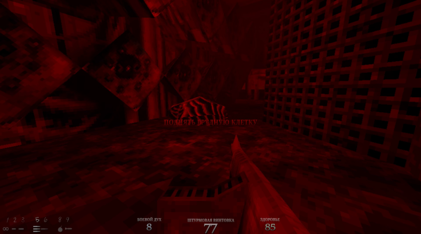 Из ужасно некомфортного завода мы перемещаемся в лаборатории, где, судя по всему, выращивали адских существ, ставили жуткие эксперименты и превращали людей черт пойми во что. И ладно бы, если это была обычная в плане архитектуры лаборатория. Но нет. Разработчики явно играли в первого Вора, во второй Систем Шок и внезапно в СуперХот.