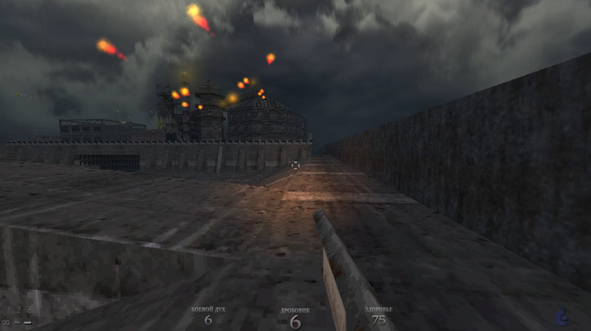 Когда я увидела эту локацию, мне резко захотелось обратно в деревню и сараи, чем видеть эту мрачную военную базу, с которой в мою сторону летят залпы огня.