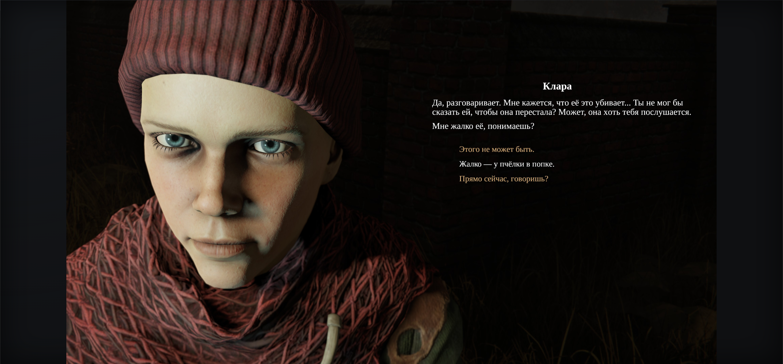 Если бы писатели... Игру создавали театралы, отсюда всё это графоманство, и стены текста. Писатель создавал Disco Ellisium, вот сравни качество текста там и тут. Люди так не разговаривают, как в Море, так разговаривают на сцене, да и то, играя какое нибудь старьё, так тогда было принято, чтобы было пафосно и мажорно. Я так понимаю в этом и была фишка, но мне здешние диалоги один хрен не нравятся.