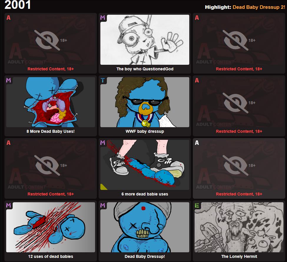 С момента появления ActionScript 1.0 начинается длинный путь Флеш игр, начало у которых было довольно грубое и неприятное. Ключевую роль в этом сыграл сайт вышеупомянутый Newgrounds, на котором, в силу очень щадящей модерации, можно было публиковать практически любой контент. Это было очень жуткое место в котором страшного по своему качеству 18+ контента было больше чем в любом другом месте. Единственной реально хорошей флеш игрой того в начале нулевых можно назвать Alien hominit, особую игру, сделанную лично автором Newgrounds в сотрудничестве со своим знакомым художником Дэном Паладином, но она была скорее исключением из правила, рядовые флеш игры того времени выглядели очень так себе и игрались не лучше.
