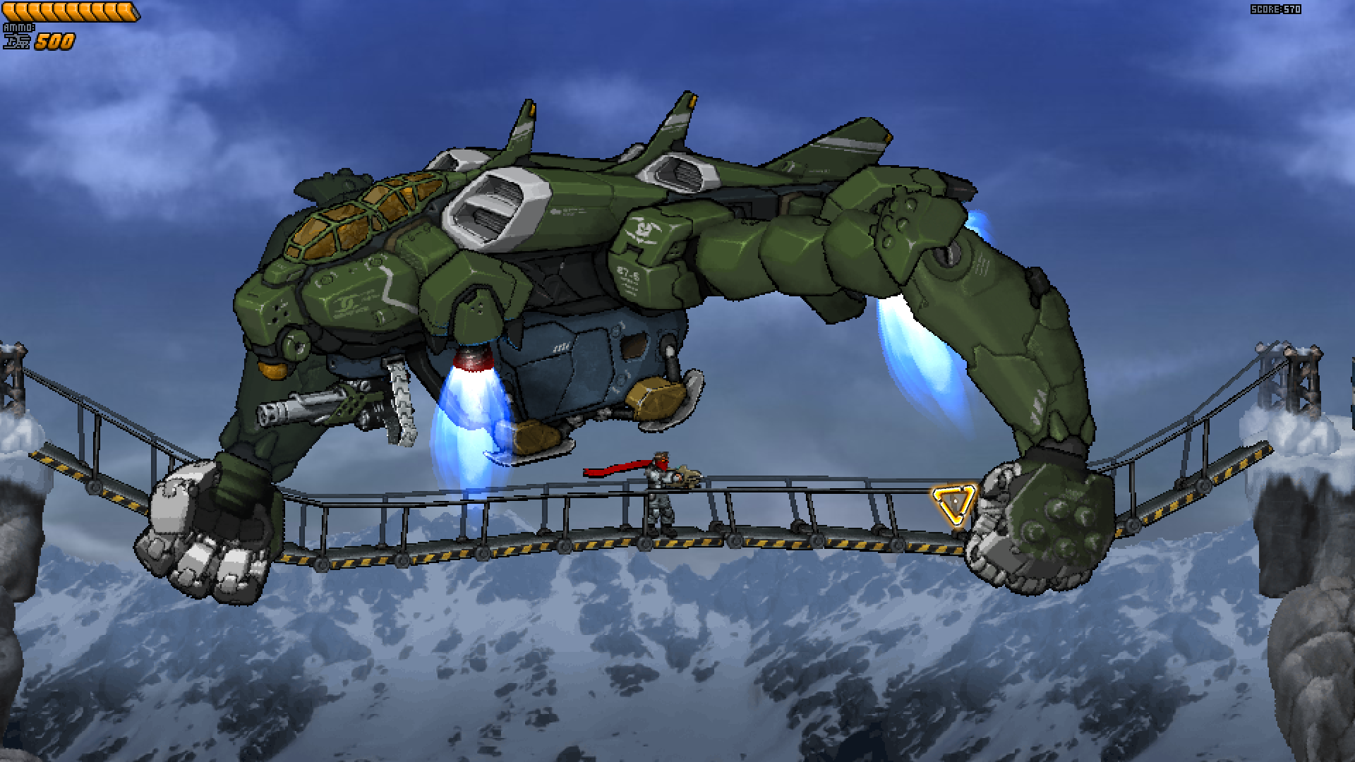 Но помимо этих впечатляющих с технической точки зрения вещей, игра сама по себе просто классная, в ней есть всё что должно быть в хорошей не душной флеш игре. Минимум сюжета, несколько типов оружия и несколько видов транспорта в виде крутых роботов и волчары, классные боссы и уважение к времени игрока, игра проходится за несколько часов и не успевает надоесть. К сожалению в браузере можно запустить только демку, игра изначально делалась с идеей продавать её в стиме.