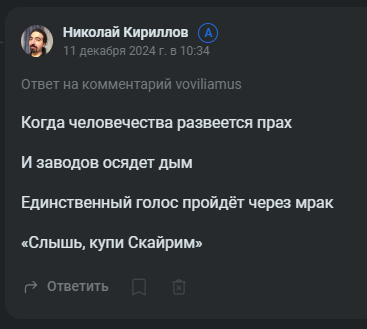 Потом четверостишье дописалось в песню, я "попросил" Suno.ai исполнить мне её, мы долго спорили о том, где и как делать ударения, как произносить Тодда Говарда, мы разругались, потом снова сошлись, в общем, родилась нейропесня, а от туда и до клипа оказалось не далеко. Может уже кто-то слышал её, но я решил, что раз она на игровую тематику, то не грех её сюда и скинуть на обозрение игровому народу, тем более, что её текст может быть скоро уже будет неактуальным.