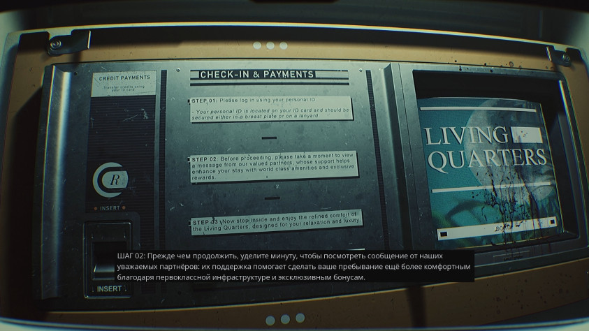 Но и безопасные зоны в игре присутствуют, в них всегда есть проектор, проецирующий картинку на всю стену. Активация беспроводного подключения рядом с подобным проектором позволит герою просмотреть доступные данные в ИПК. Найденные пароли, видеозаписи, проливающие свет на события на станции, текущие цели и задания, и их статус, а самое главное именно тут происходит сохранение игры. При столкновении с врагами герой погибает от одного-двух ударов, никаких аптечек действительно в игре нет, достаточно отбежать в безопасное место, чтоб перевести дух и условное здоровье восстановиться. Но и никакой перманентной смерти тоже нет, за эти годы вышли десятки проектов подобного жанра, разработчики верно расценили, что такая механика нанесла бы больше вреда сюжетному приключению и отказались от неё. Отказались они и от нелинейности. Да, изначально на выбор предоставлены две локации для изучения, но отправившись во вторую игрок посмотрит на закрытую дверь и вернётся на уготованные рельсы.