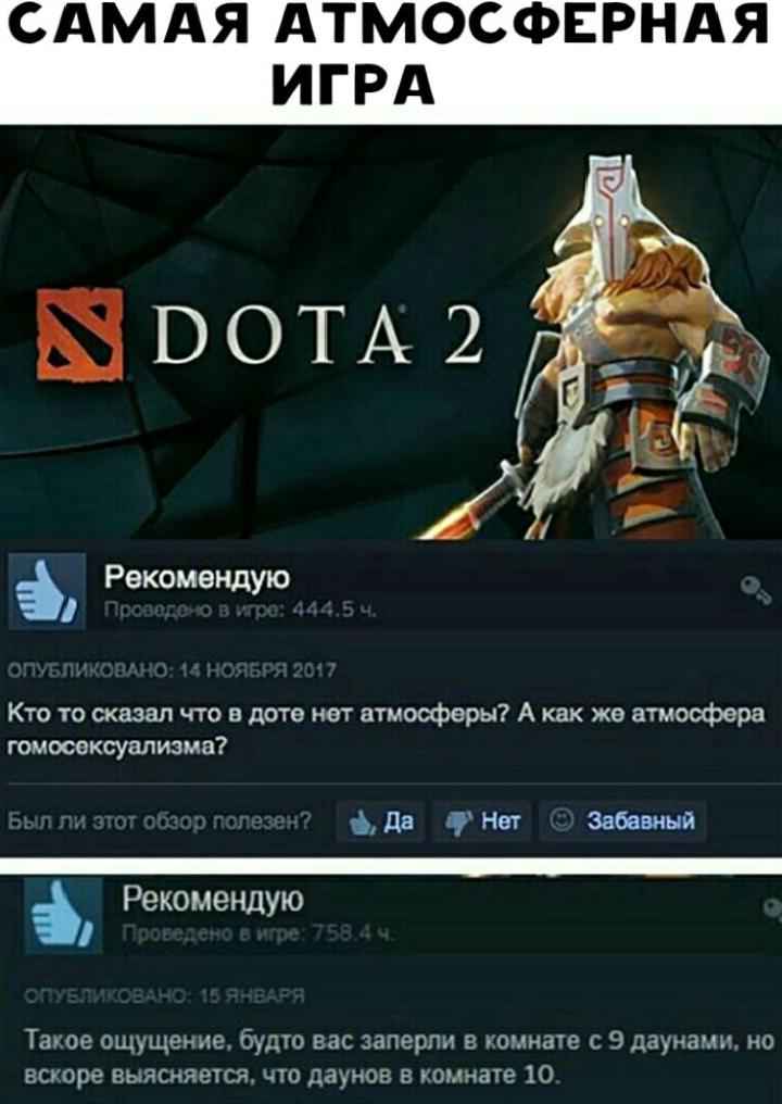 Там словно живут демоны из преисподней, которые кипятятся в собственной злости и ненависти ко всему миру. Стоит тебе только попробовать и зайти поиграть, так ты узнаешь столько нового про свою маму, про свою сестру, про себя конкретно… Максимально неадекватное поведение и токсичность, которая сильно отталкивает от себя. Черт возьми, да комьюнити настолько дерьмом провоняло, что про это даже мемы сделали, причём давным-давно. Даже если вы играете в доту и не бомбите каждые две минуты, вас уже заранее заклеймили пятном позора, просто потому что стереотип закрепился достаточно глубоко в подсознании людей…