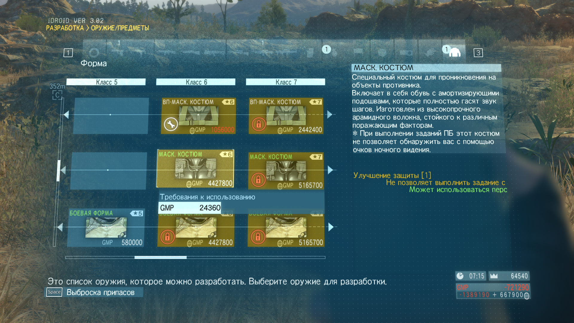 Там же еще миллионы меню, подменю, менеджмент базы. В особенности хочу упомянуть раздел исследований. Там столько всего, причем большая часть предметов бесполезна. Например, типы камуфляжа ни разу за игру мне не понадобились. А там же еще и коробки . Понимаю, тем, кто играл в предыдущие серии франшизы, немного поностальгирует. Но зачем так много улучшений? Как будто это не одиночная игра, а Батлфилд. Я бы, может, и не триггеррился из-за этого, если бы в игре исследования не занимали реальное время. То есть хочешь что-то прокачать, а тебе :”это займет 12 часов”, и ты реально ждешь 12 часов. Когда я играл в МГС 5 еще на ПС3, мне приходилось оставлять консоль на ночь! При этом еще приставка так нагревалась, что могла на кулере улететь, как Снейк на своем вертолете.