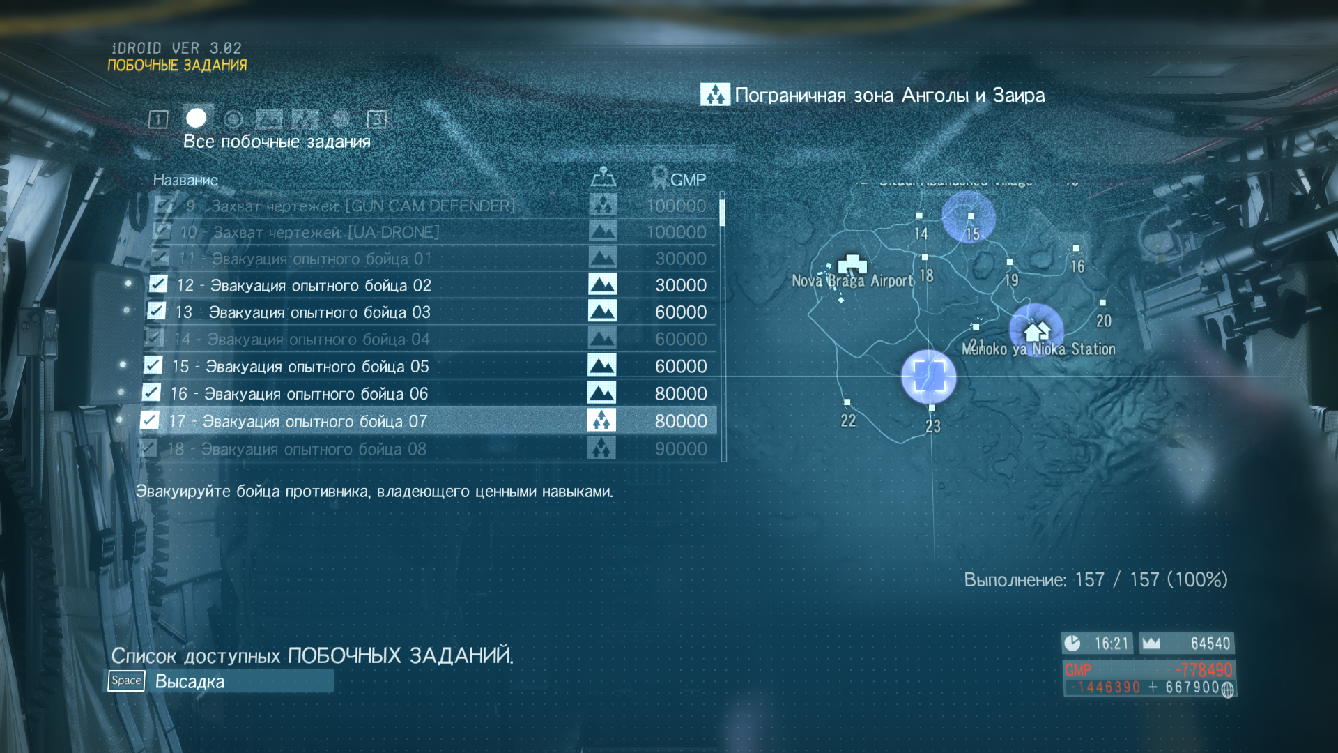 Побочки… Их же не мог Кодзима сделать? Правда? Ну не может признанный гений сотворить такую дичь. Бесконечная череда найди пленника, найди солдата, найди чертежи. При этом нет вообще никакой постановки, просто идем на блокпост, зачищаем, уходим. Даже короткого диалога никто не придумал. Нет ни одного интересного побочного задания. Из сколько их там? Больше ста!!!! Единственное для чего они нужны - затягивать прохождения игры.