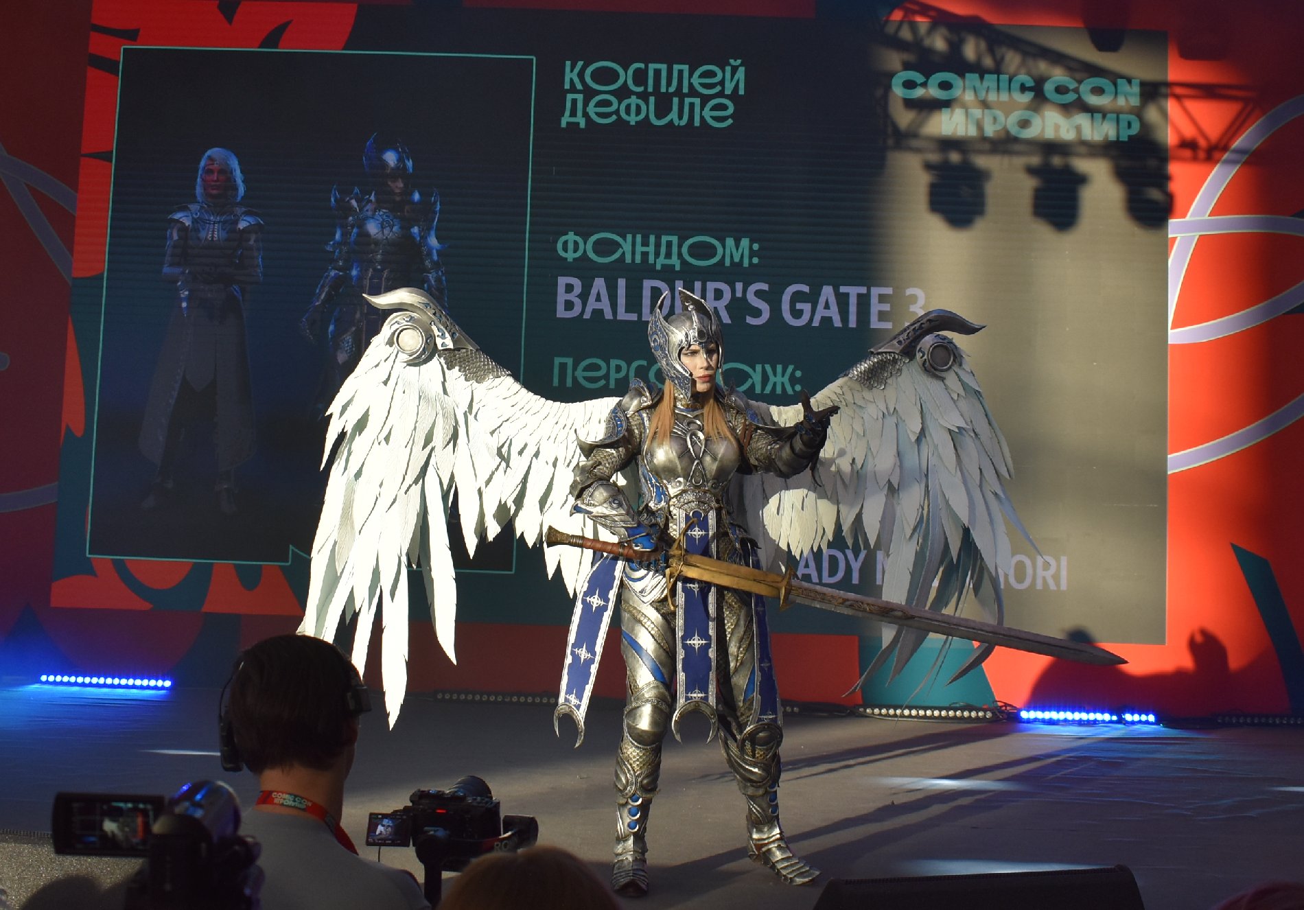 И как раз подошло время конкурса косплея… К сожалению, нормальное освещение на сцене так и не наладили.