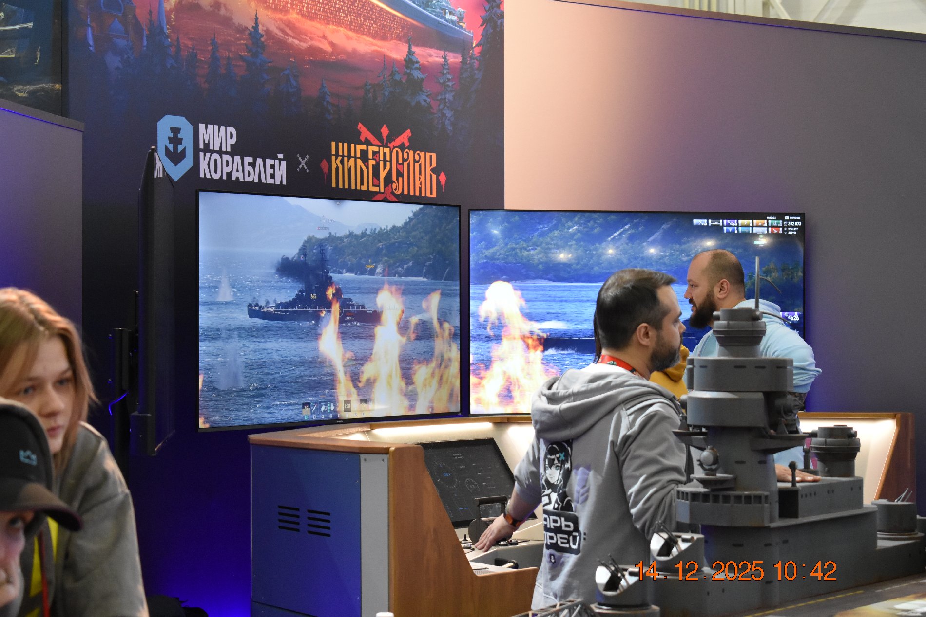 Дальше было уже совсем просто ожидать допуска: в тепле, общались, делились советами, куда поспешить в первую очередь. Я сразу направился в тир, за энергетиками: в этот день при попадании пять из десяти можно было получить сразу упаковку из двенадцати банок. (А надо было торопиться в другое место к «Миру кораблей», как посоветовали в очереди.) Всё-таки на подобные мероприятия надо приезжать на два дня минимум: в первый день находишь то, что наиболее заинтересует; а во второй день спешишь к этому месту раньше всех.