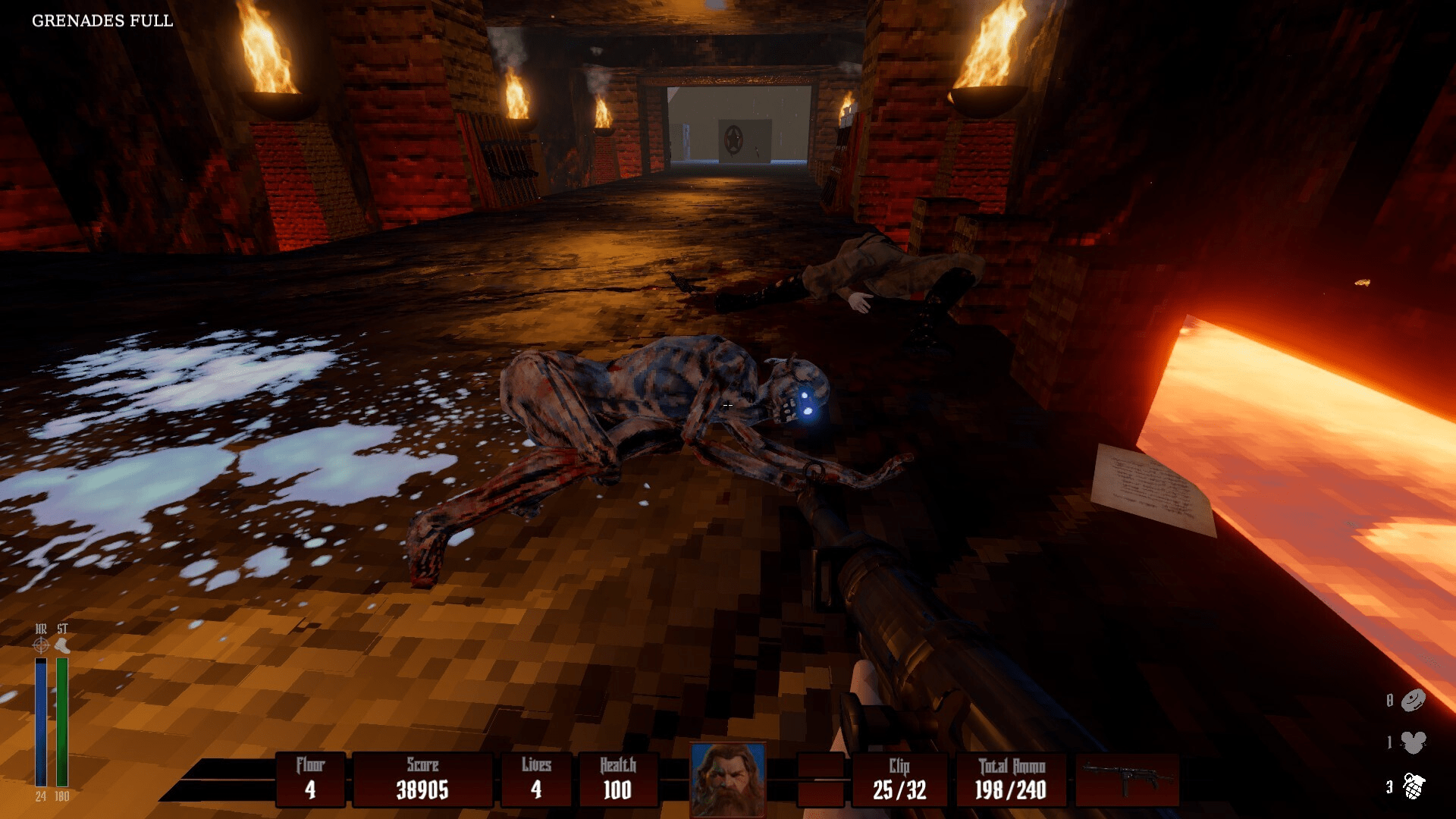 Играть дальше возможным уже не представляется, и это досадно — игра в самом деле хороша и увлекательна. В целом, работоспособность это главная претензия к Darkenstein — всё остальное сделано пусть не идеально, но на пристойном уровне. Ганплей наиболее близко воссоздаёт впечатления упомянутого Return to castle, разве что вместо хитскан-атак враги стреляют прожектайлами, — это обстоятельство роднит игру с прочими ретро-шутерами и побуждает тебя к активным перемещениям в процессе схватки.