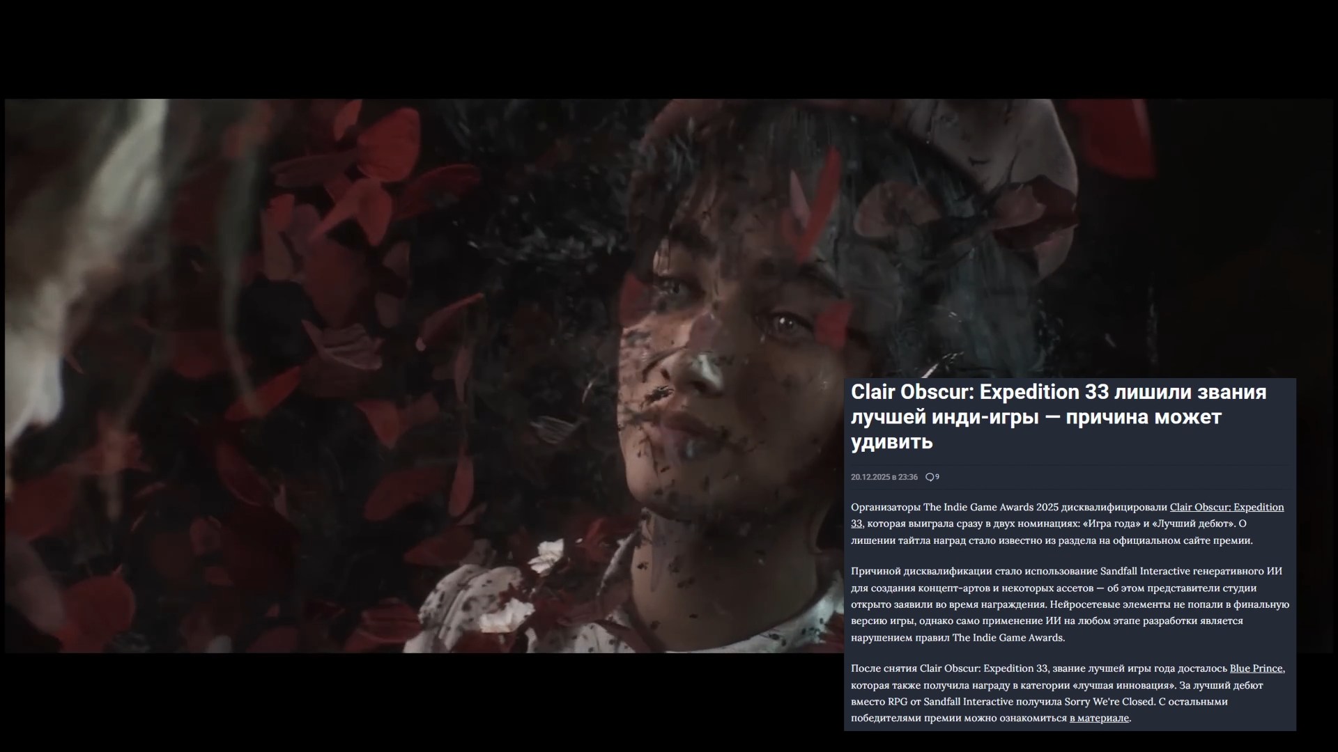 Совсем недавно Expedition 33 лишили наград, в том числе звания «Игра года», после того как в проекте обнаружили следы использования нейросетей.