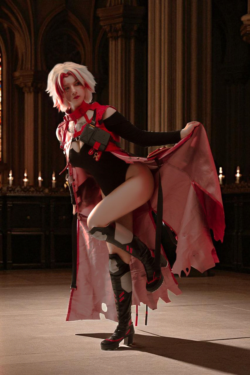 К: — Ну, если вдруг произойдёт что-то так, как было задумано, то да, с почином. Поэтому выкручиваться — это моё всё. То есть где-то я такая: «Ладно, снимаем так как есть». Условно говоря, я забыла на фотосет обувь персонажа. Я такая: «Ну, у меня есть обувь на другого персонажа, в целом, нормально, сойдёт». И, как раз таки, у фем-версии Скара… Появилась обувь персонажа из Киберпанка.