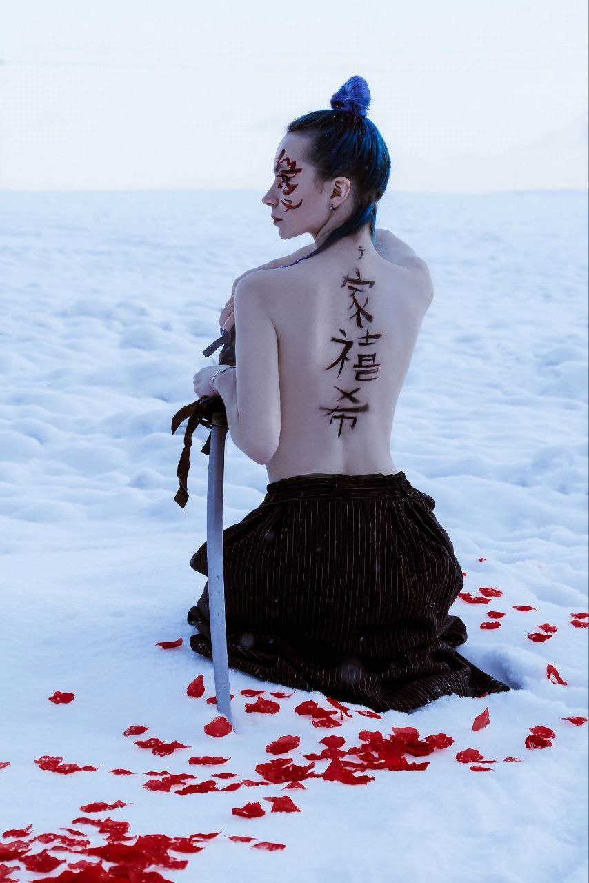 К: — ИИшки тогда не было. Это фотосет, по-моему, 18-го года или 19-го. У меня здесь руки краснющие, потому что я держала в них снег. Я при этом ещё была босиком, чтобы ты понимал. Многие фотографии по итогу не ушли в отбор, ибо я этим фотосетом была очень недовольна. Поэтому у меня осталось только три фотографии которые я люблю, которые я одобрила, которые я сама выложила. Где-то у организаторов фотосъемки есть все исходники и там видно все остальные кадры, которые ушли в отбор. Но конкретно себе я забрала вот эти три. И просто думаю… переделать как-нибудь этот фотосет.