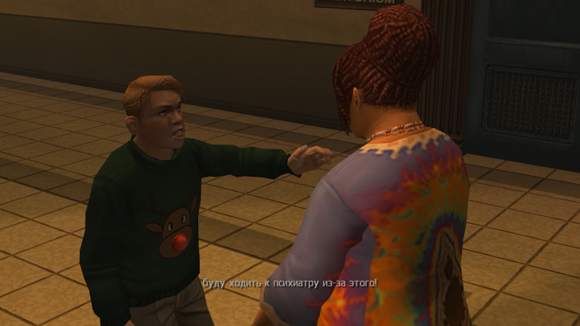 Мне хочется задаться вопросом, а в чём была сверхзадача Rockstar и братьев Хаузеров? Есть три версии — одна дебильная и две другие адекватные. Начиная с дебильной, авторы культивировали насилие среди подростков, создав игру буквально о школьном буллинге. Очевидно, это мы отметаем сразу.
