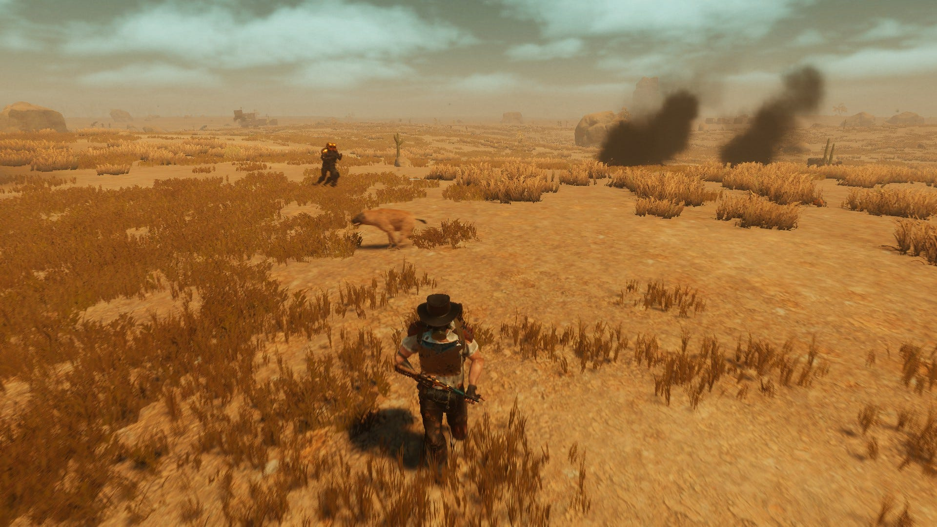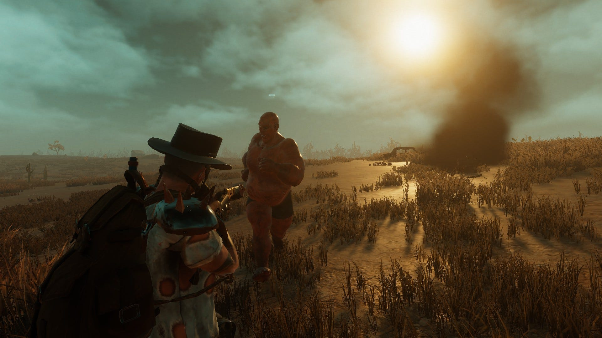 В игре есть типы погоды - и самое главное, жара, влияющая на ваше состояние, чем жарче местность, тем быстрее хочется пить, а перегрев наносит персонажу урон - в Plains Of Pain температура реализована грамотно, а самое шокирующее - РАБОТОСПОСОБНАЯ ТЕНЬ