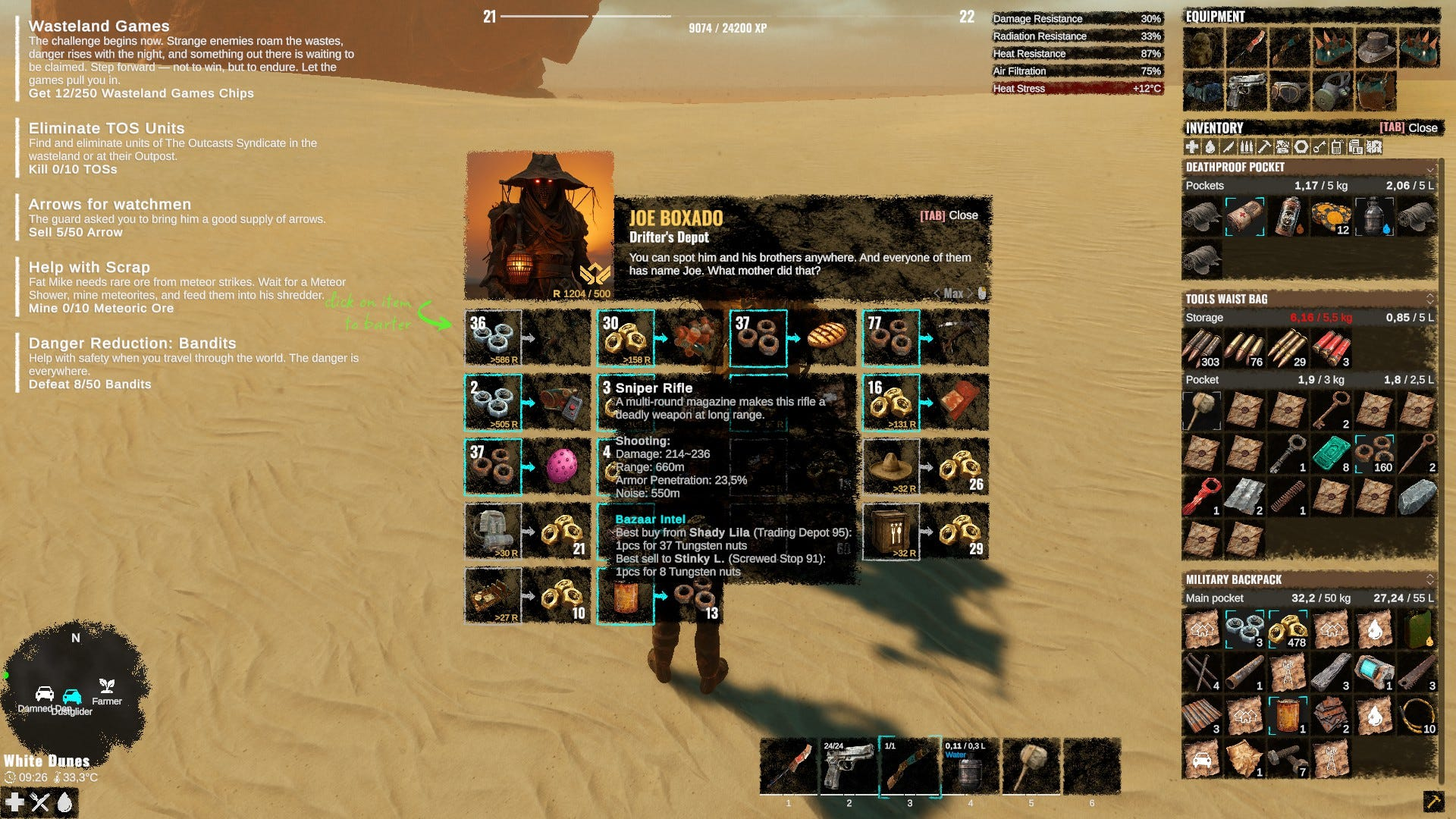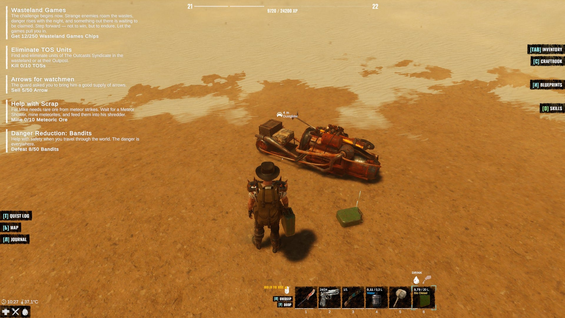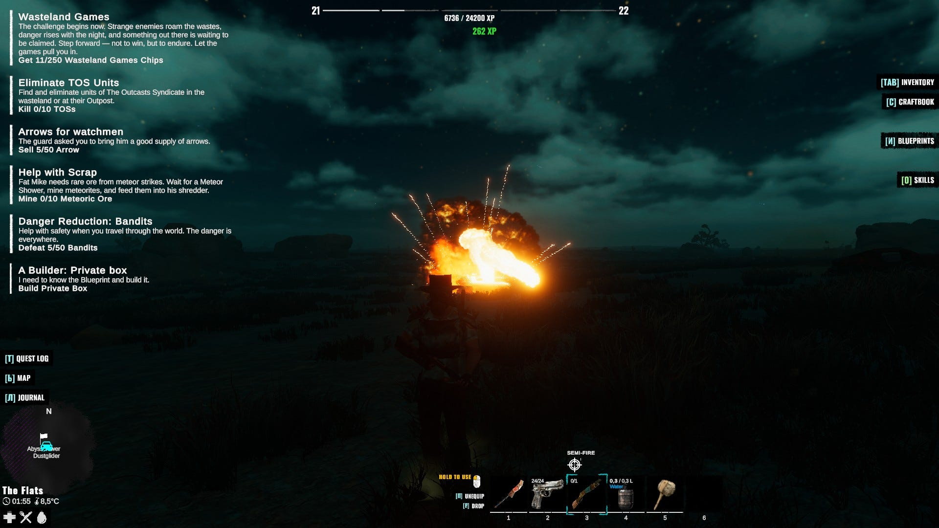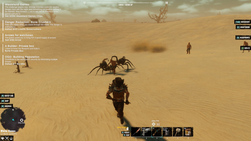 Насчет обвеса персонажа - пока это неплохой набор стрелкового, причем крафтящегося оружия, с разным подходом к стрельбе - от арбалетов из хлама до полноценной снайперской винтовки - есть и дробовики, и пистолеты нескольких видов, и автоматы - короче, разнообразие внезапно приятное, а стволы требуют разных патронов и ведут себя по разному.