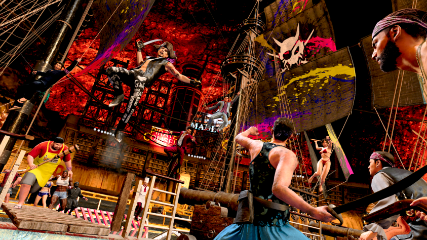 Другое дело, что у нас тут параллельно такая, вполне себе «якудзовская» история тоже проходит. И по какой-то причине конкретно Pirate Yakuza in Hawaii не особо умело балансирует дурацкие и серьезные аспекты своей истории, из-за чего игра не ощущается достаточно цельной. Да что уж там, даже чисто стилистически и визуально пиратская сторона со старомодными фрегатами, сокровищами и треуголками просто не сходится с тем, как выглядит тот же знакомый по Infinite Wealth Гонолулу.