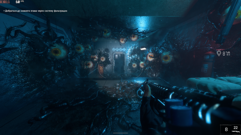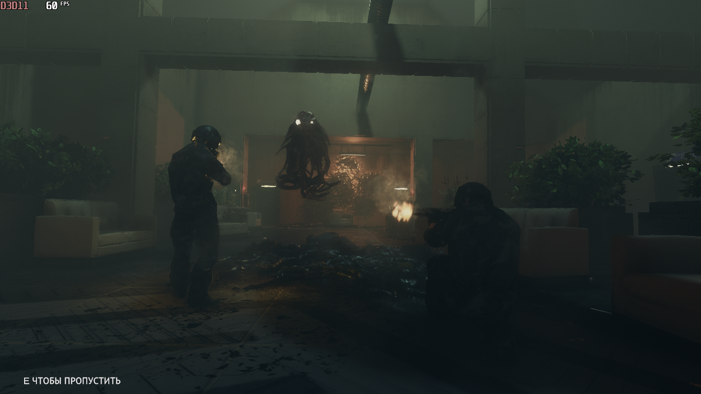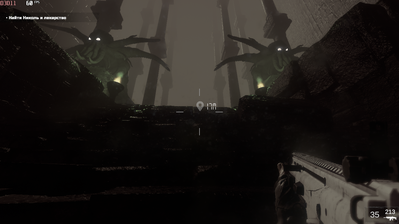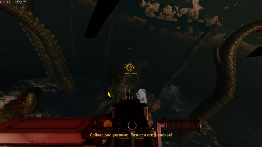 Основная тематика, по моему, полностью описывается фразой «это как F.E.A.R, но с Ктулхами». Немалую часть игры занимает истребление всех возможных (и не очень) форм жизни при помощи огнестрельного оружия.