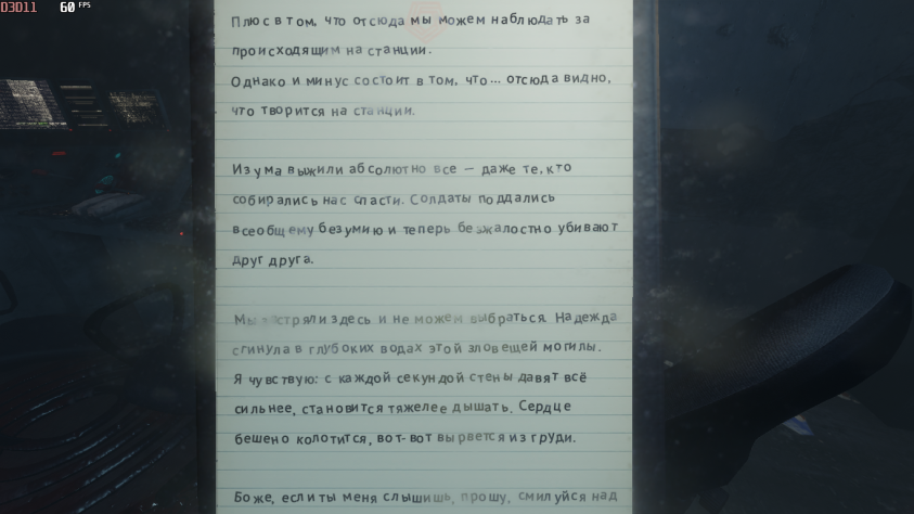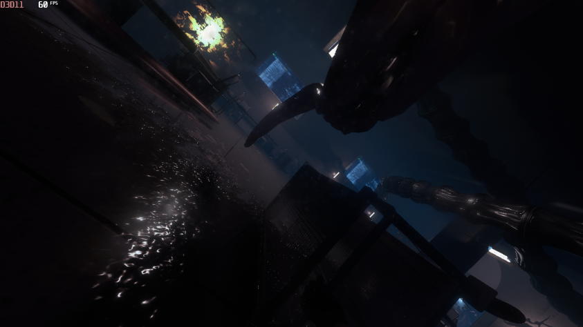 Теперь немного подробнее. Игра не выглядит совсем пустой, но и интерактивных вещей совсем немного, пара записок, письма в компьютерах, хватает, одним словом. Визуал — всё светится, блестит, отражения прикольные, но засветы часто слишком сильные, внезапный туман перед лицом. Отдельно хочется отметить взрывы гранат: очень хорошо получилось. Играть, в первое время, довольно интересно и даже местами приятно (а иногда даже и страшно), но эта растянутость всего и вся. без «бэктрекинга» игра была бы, скорее всего, в половину короче (и, возможно, лучше). Механик мало, но они применяются на протяжении всей игры. То есть, нет механик «чтобы было». Сюжет тухловат, классический «загадочный помощник», с которым подразумевается взаимовыручка., а потом он становится противником-боссом. Звук — неплох, но рассинхронизирован (липсинком даже не пахнет)
