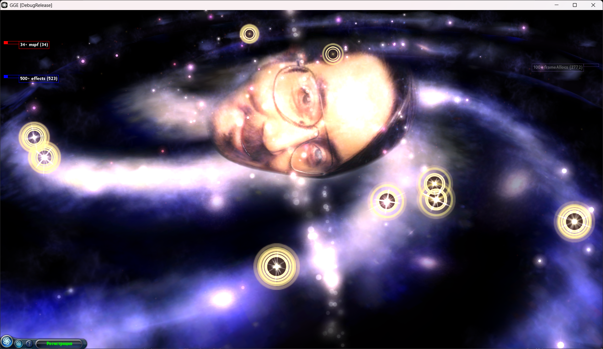 После долгих мучений с Daemon Tools и подобными программами, удалось попасть в игру. Встречает игра нас ч/б заставкой, которая возможно была сделана в 2005 году. Сама галактика слегка отличается, но пасхалка с разработчиками игры, которая активируется слишком быстрой раскруткой галактики, отсутствует. Вместо них тут сам Уилл Райт.