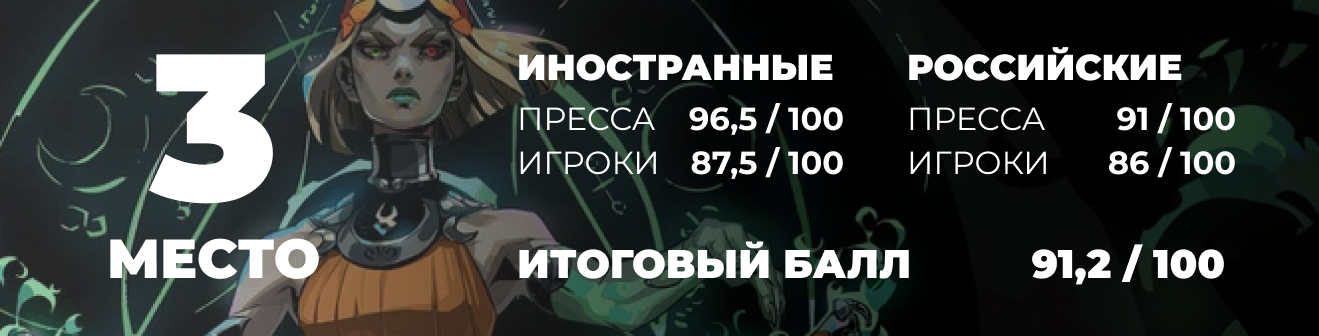 Мы врываемся в тройку лучших игр года по оценкам, и как бы вы не выделяли отдельные тайтлы, эти оказались самыми высооцененными. И знаете, я заметил особую тенденцию, что большинство игр года выходят не в горячий сезон, а обособленно. Это касается всех трех игр топа, включая Hades II.