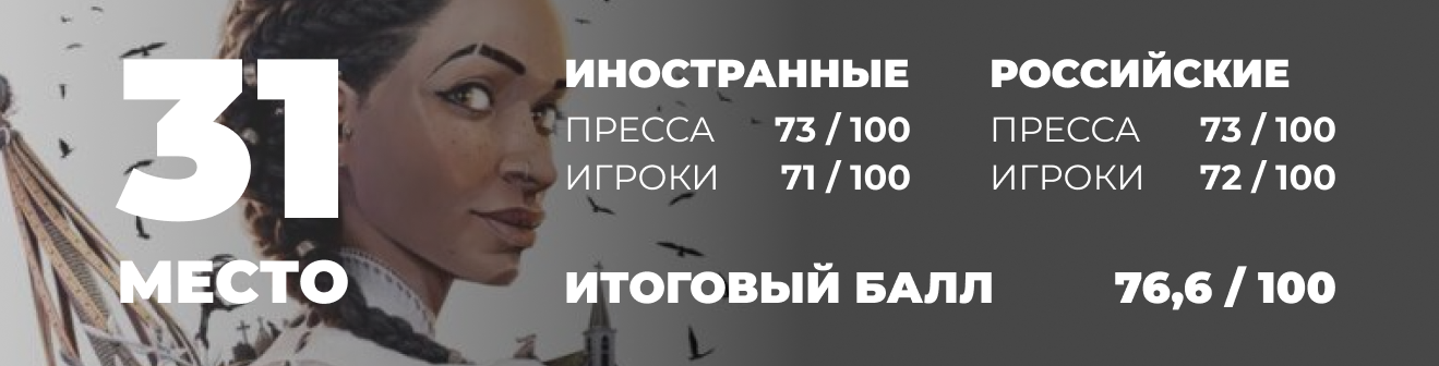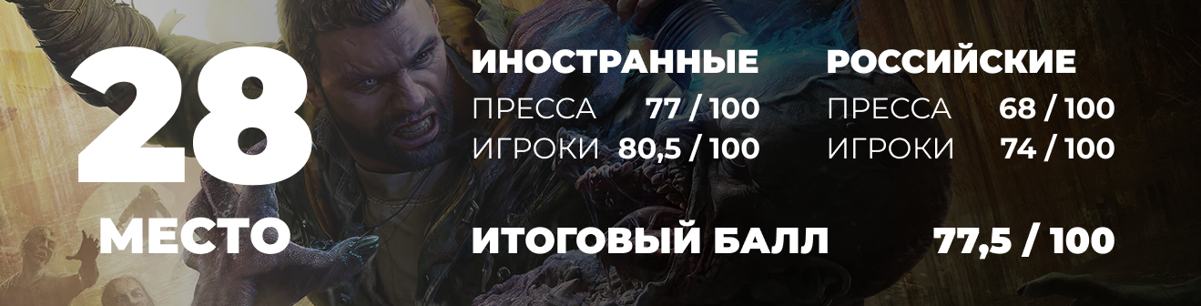 И это только база серии, когда как в Wilds подключаются еще и свежие фишки. И на мой взгляд в этом году — это одна из недооцененных игр этого года, которую на релизе подвели слабое техническое исполнение и малая наполненность контентом, в сравнении с предыдущей. В течении года ситуация выровнялась, а вот оценки нет, и потому только 33 строчка.