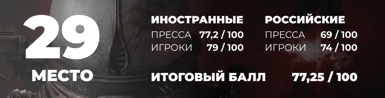 Я давно иду иным путем. Во многочисленных роликах и статьях цикла «от худшей к лучшей» я только и делал, что просто считал оценки игр от мировой прессы на многочисленных ресурсах, и от игроков в основных агрегаторах, а затем из них получал усредненный балл, который и означает место в топе.