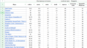 Итоговый балл к каждой игре основывается не только на отображенных баллах, но и с учетом дополнительного источника (в виде Steam и систем оценок в магазинах PSN и прочих)