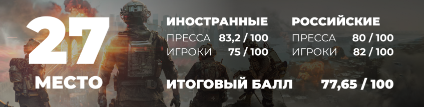 Мне кажется прессу при таких подсчетах не стоит учитывать, т.к. это мнение небольшой группки людей, еще и проплаченное зачастую. Кроме того не учтено количество игроков, непопулярные проекты с узкой аудиторией часто имеют довольно завышенные оценки, в то время как популярным проектам (BF6 например) гораздо тяжелее добиться хороших оценок, а любой инфоповод может изменить рейтинг.