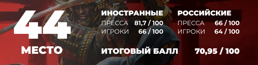 Безусловно, игра, выглядит солидно, звучит дорого и в целом делает всё «как надо», но при этом почти ничего в ней не цепляет. Это крепко собранный экшен в открытом мире, с красивыми пейзажами, аккуратной постановкой и знакомыми механиками, которые мы уже видели в любом другом Ассасине, и даже в оригинальной Ghost of Tsusima. И мне кажется проблема в том, что за всей этой вылизанной формой нет ничего по настоящему нового