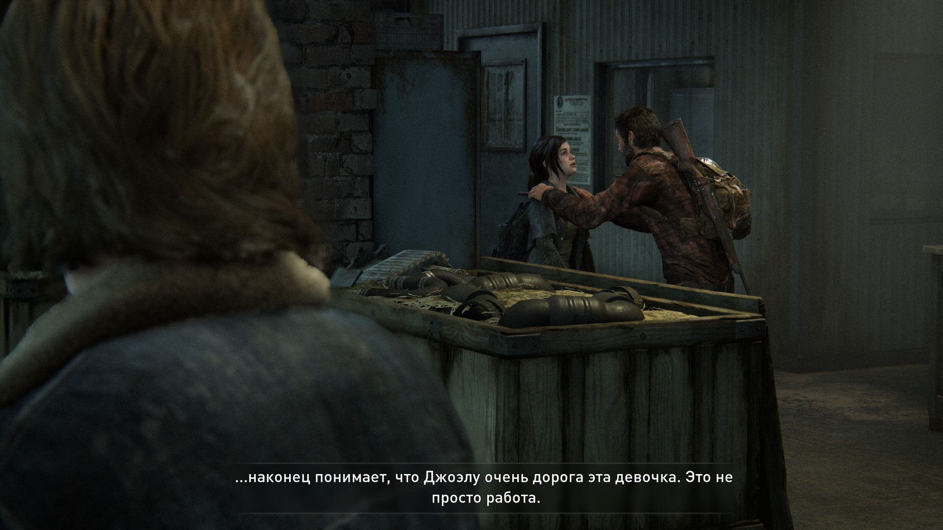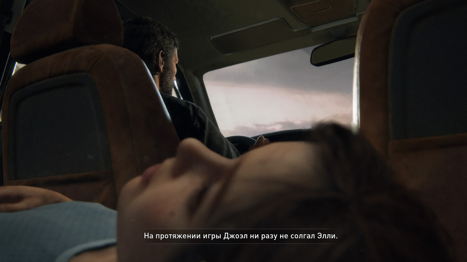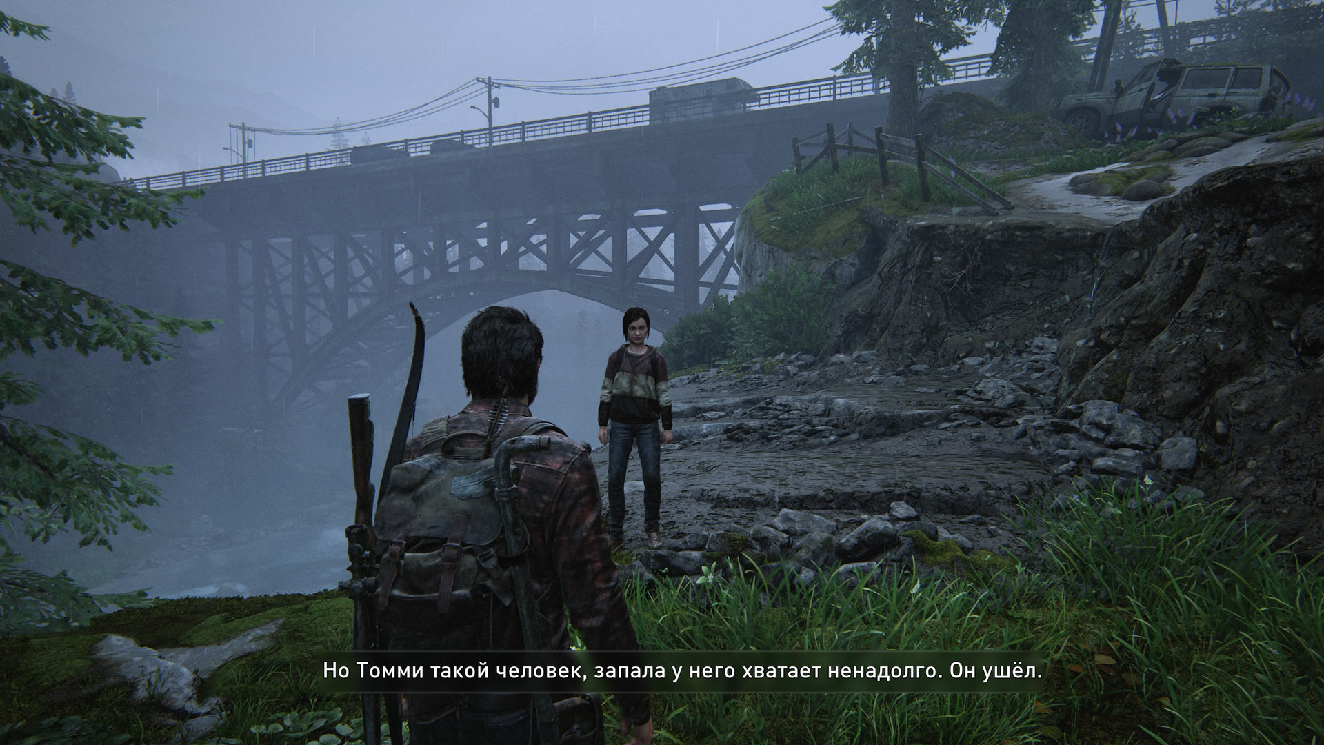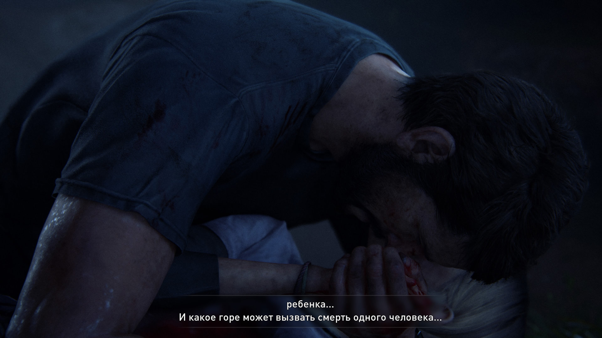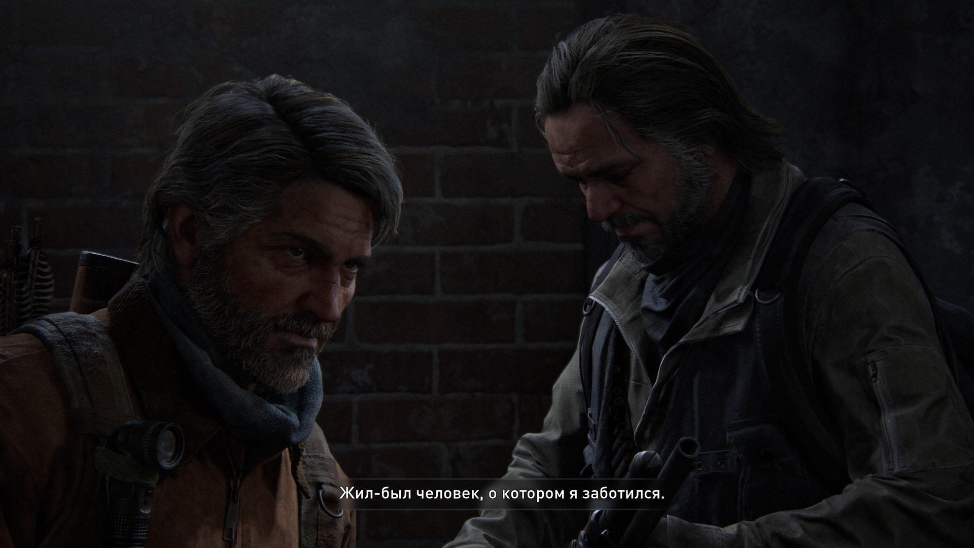 Возможно, читателю покажется странным, с какой дотошностью я разбираю фрагмент длиной в 5 секунд, происходящий даже не в рамках кат-сцены. Однако, пожалуй, каждый, кто знаком с сюжетом первой и второй частей TLoU, при повторном детальном рассмотрении этой сцены могут поразиться, с какой полнотой этот небольшой отрезок отражает суть характеров Джоэла и Томми.