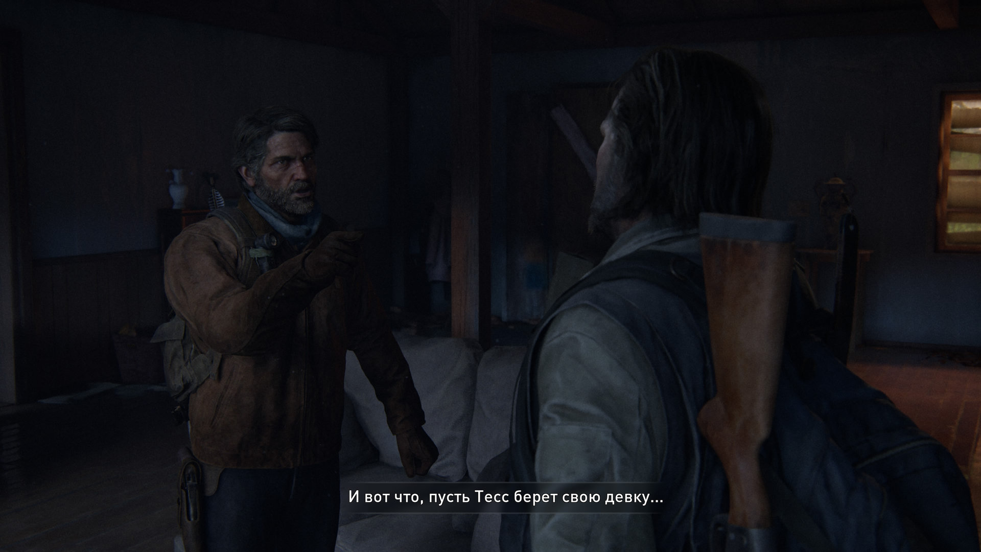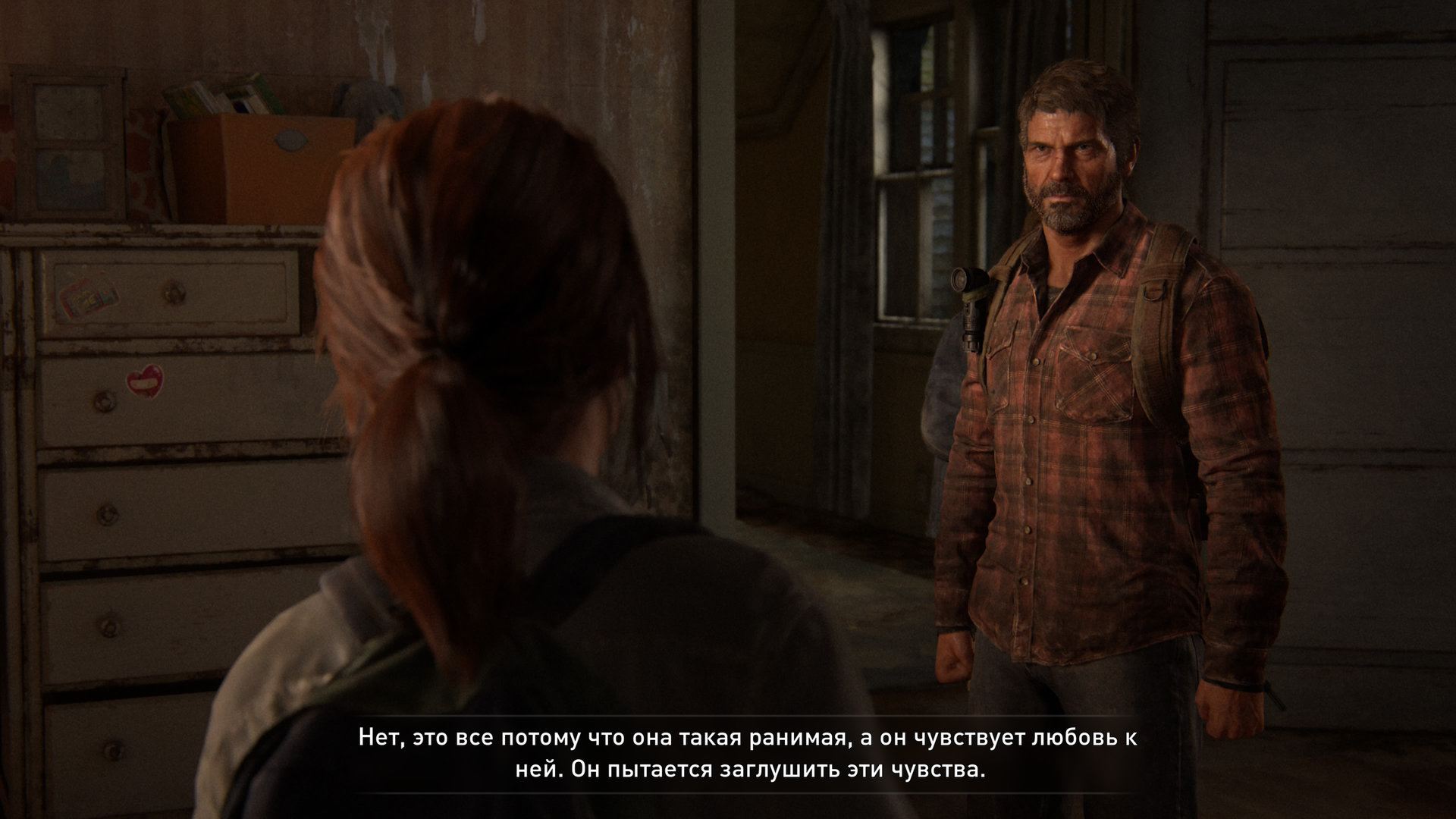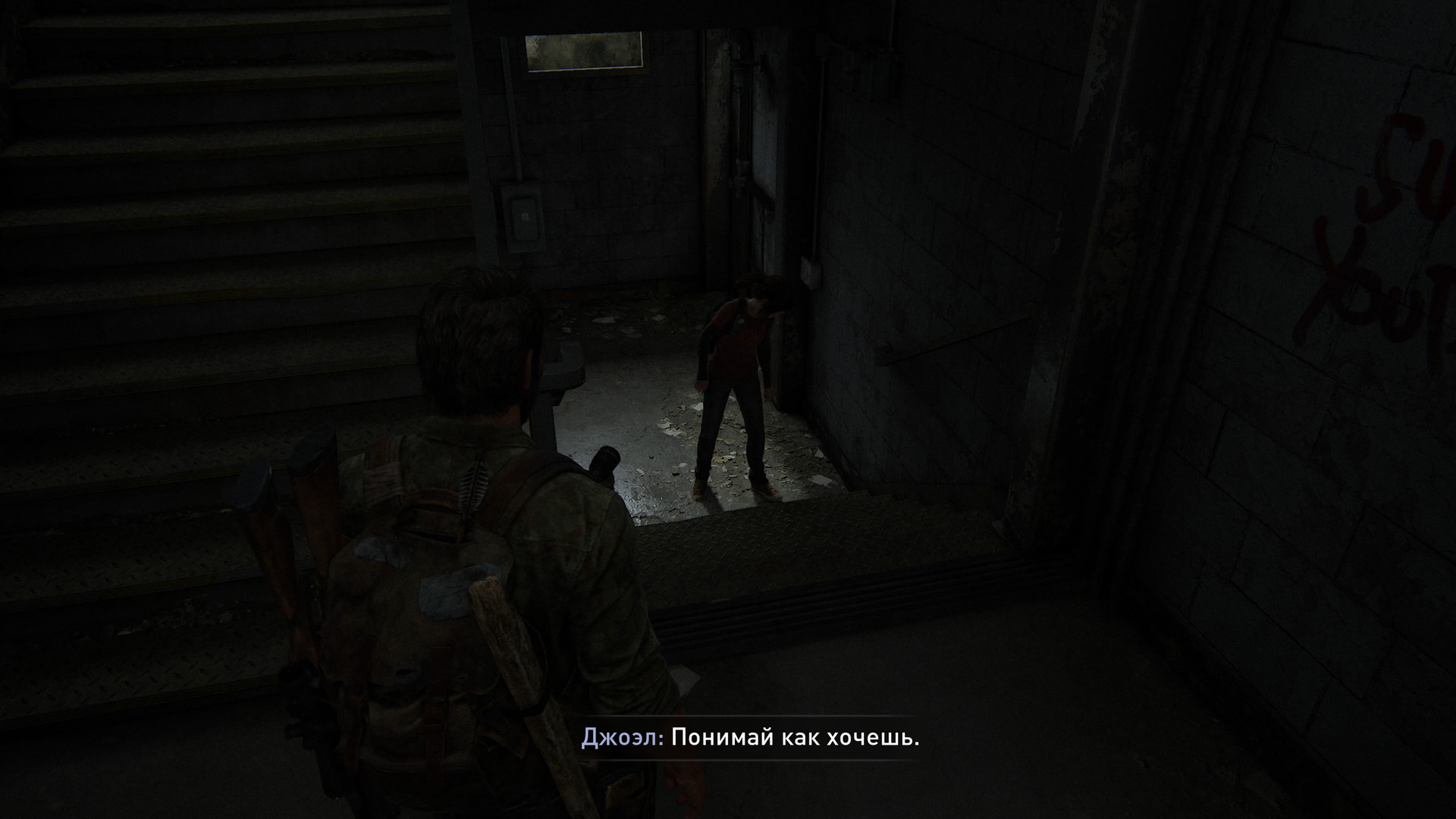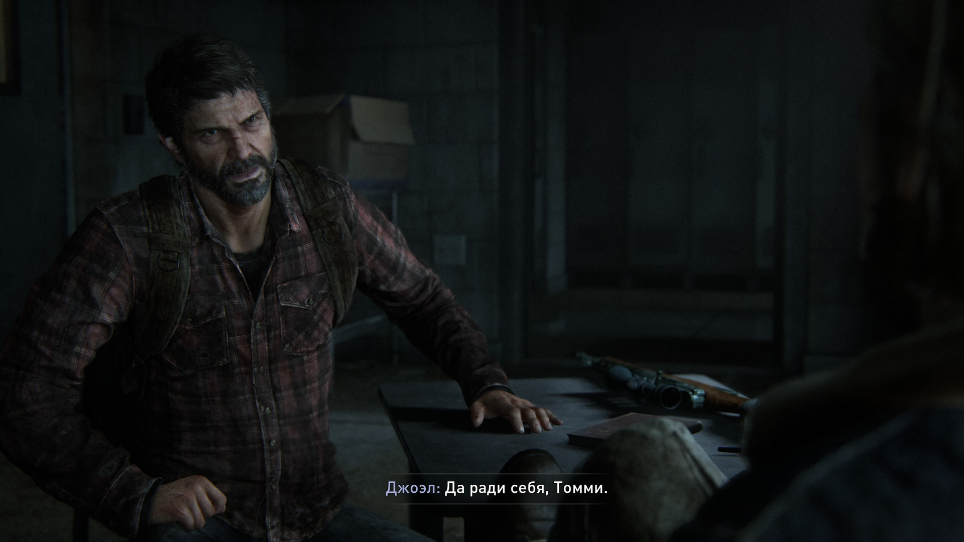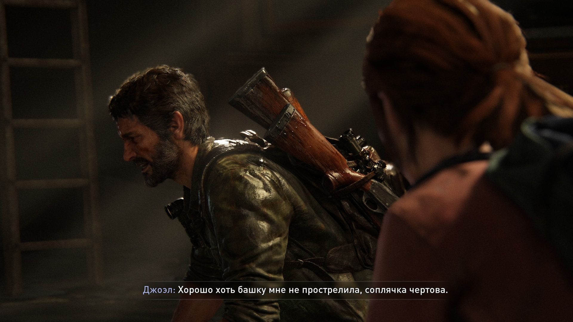 Возможно, читателю покажется странным, с какой дотошностью я разбираю фрагмент длиной в 5 секунд, происходящий даже не в рамках кат-сцены. Однако, пожалуй, каждый, кто знаком с сюжетом первой и второй частей TLoU, при повторном детальном рассмотрении этой сцены могут поразиться, с какой полнотой этот небольшой отрезок отражает суть характеров Джоэла и Томми.