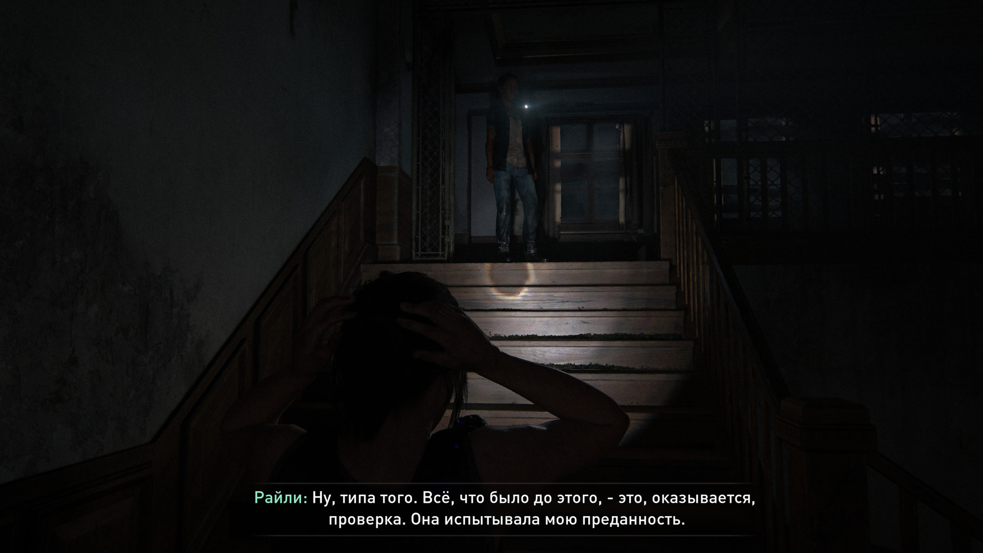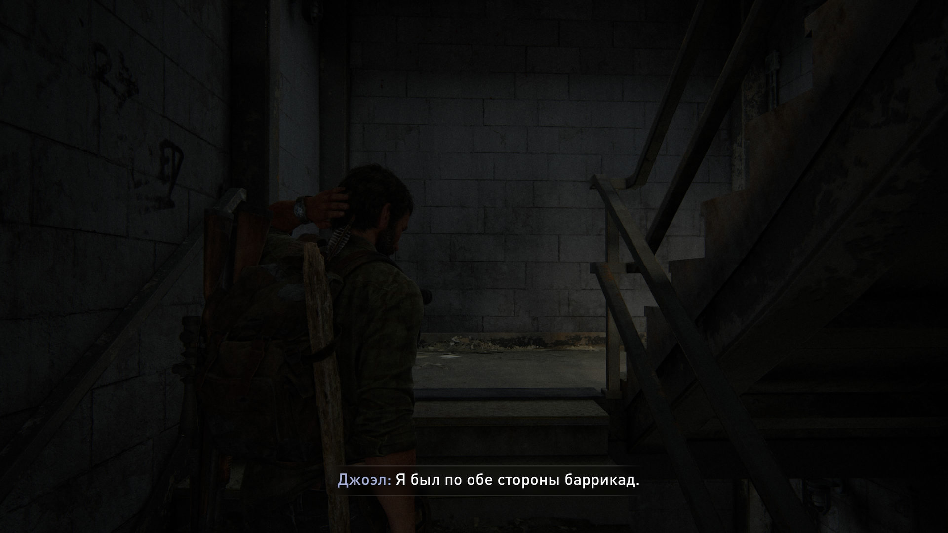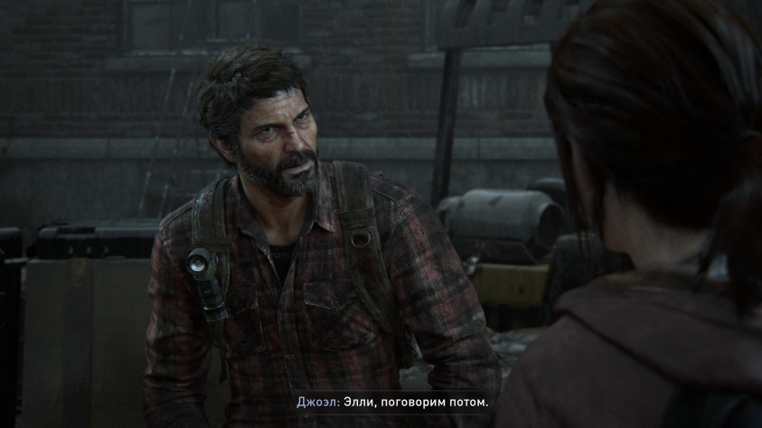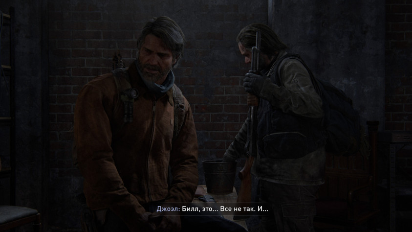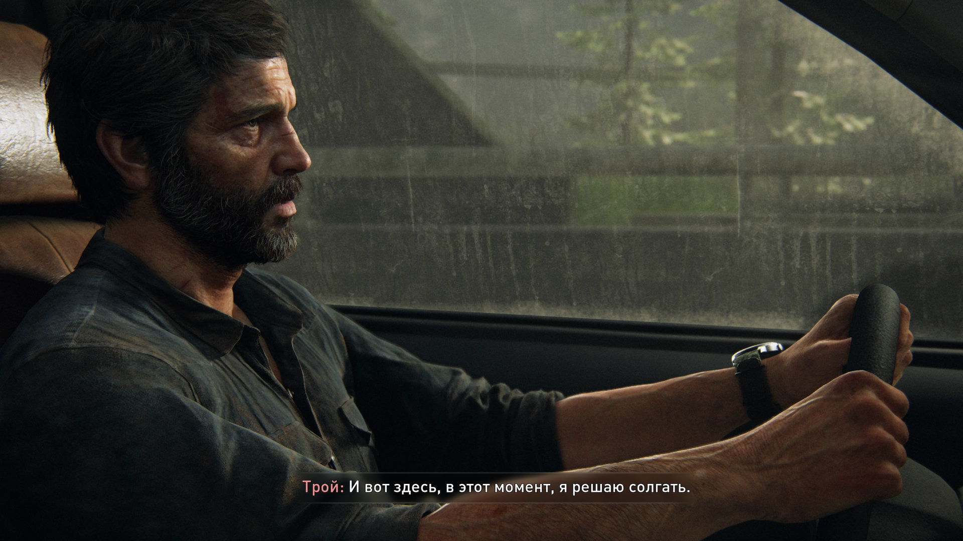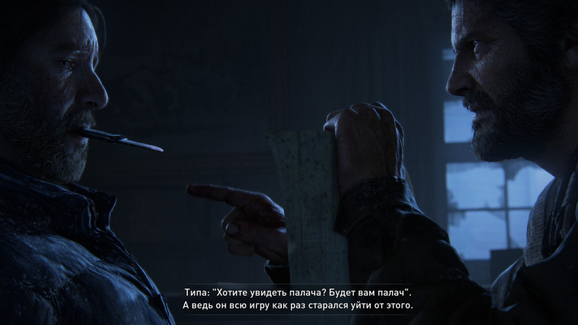 Возможно, читателю покажется странным, с какой дотошностью я разбираю фрагмент длиной в 5 секунд, происходящий даже не в рамках кат-сцены. Однако, пожалуй, каждый, кто знаком с сюжетом первой и второй частей TLoU, при повторном детальном рассмотрении этой сцены могут поразиться, с какой полнотой этот небольшой отрезок отражает суть характеров Джоэла и Томми.