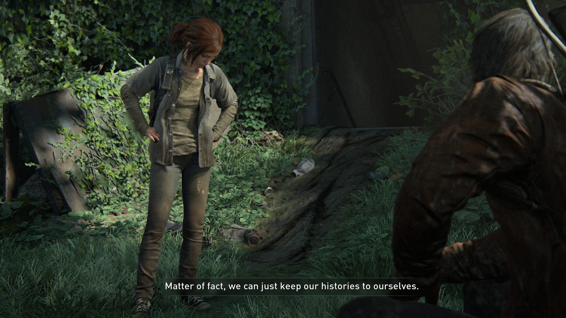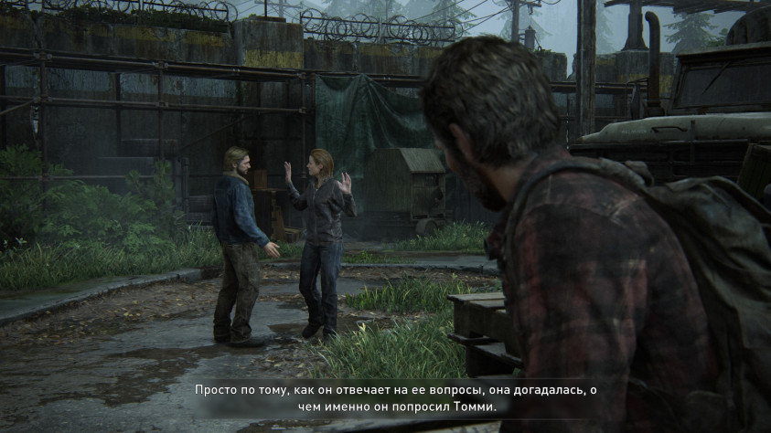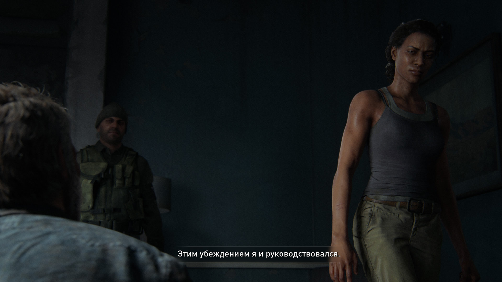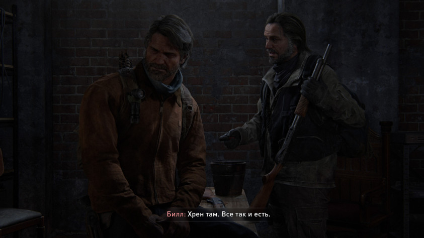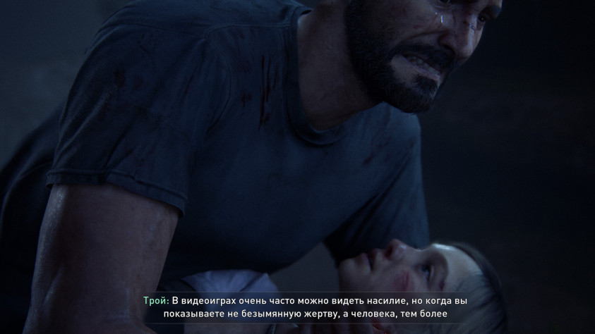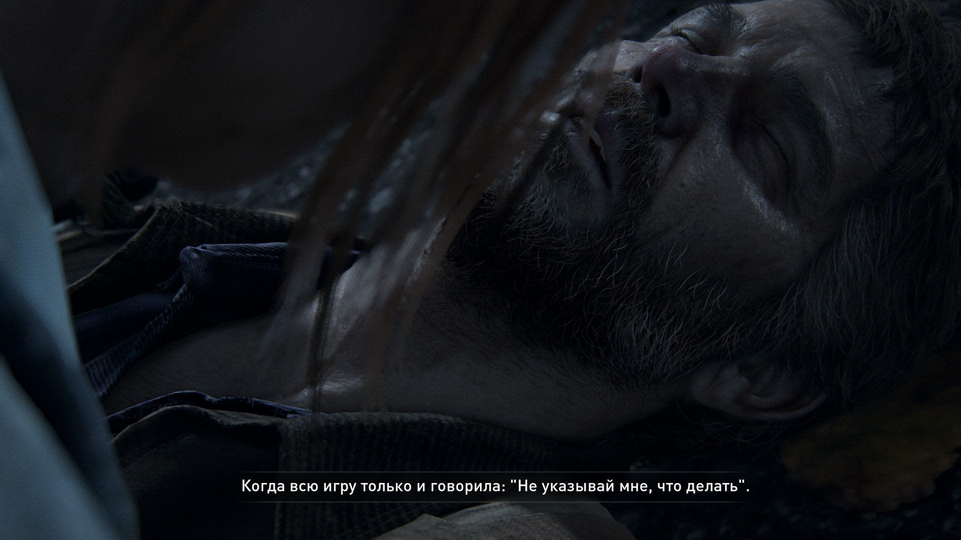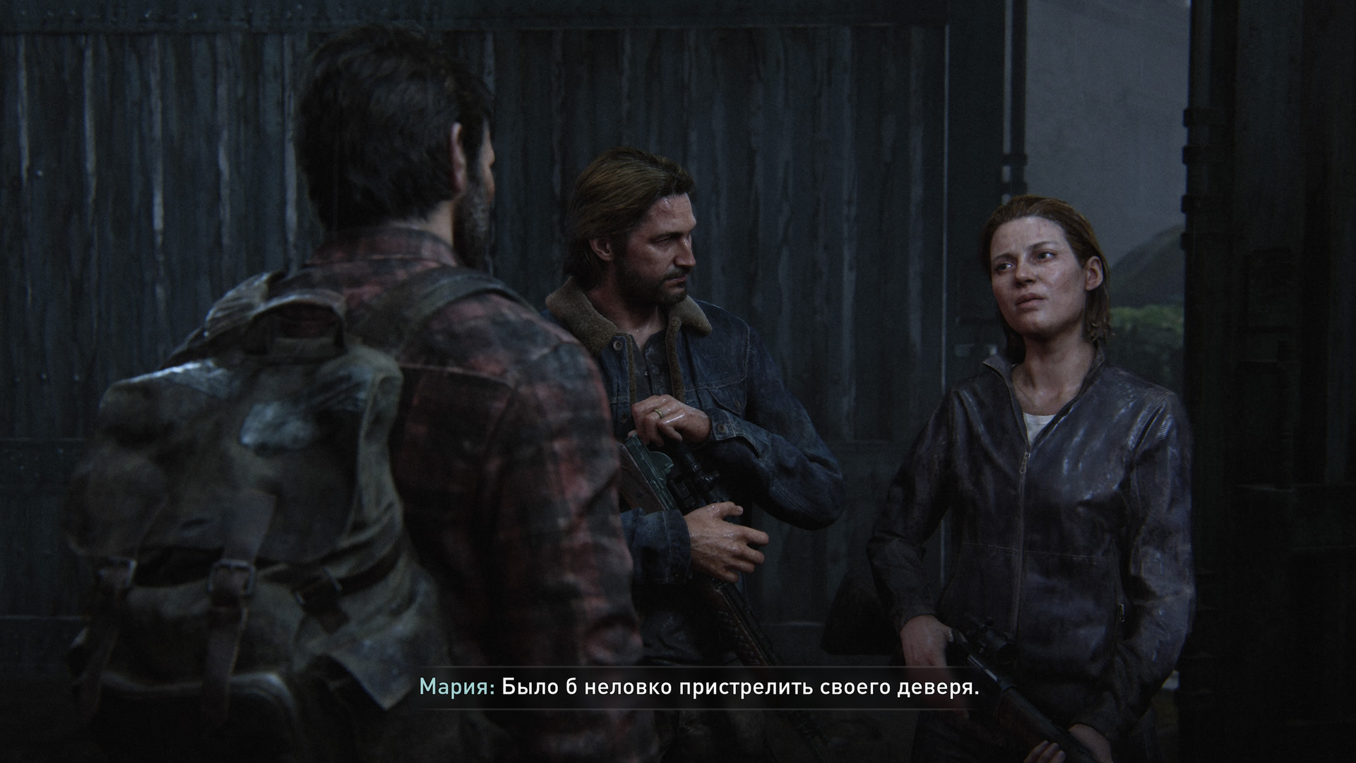 Возможно, читателю покажется странным, с какой дотошностью я разбираю фрагмент длиной в 5 секунд, происходящий даже не в рамках кат-сцены. Однако, пожалуй, каждый, кто знаком с сюжетом первой и второй частей TLoU, при повторном детальном рассмотрении этой сцены могут поразиться, с какой полнотой этот небольшой отрезок отражает суть характеров Джоэла и Томми.