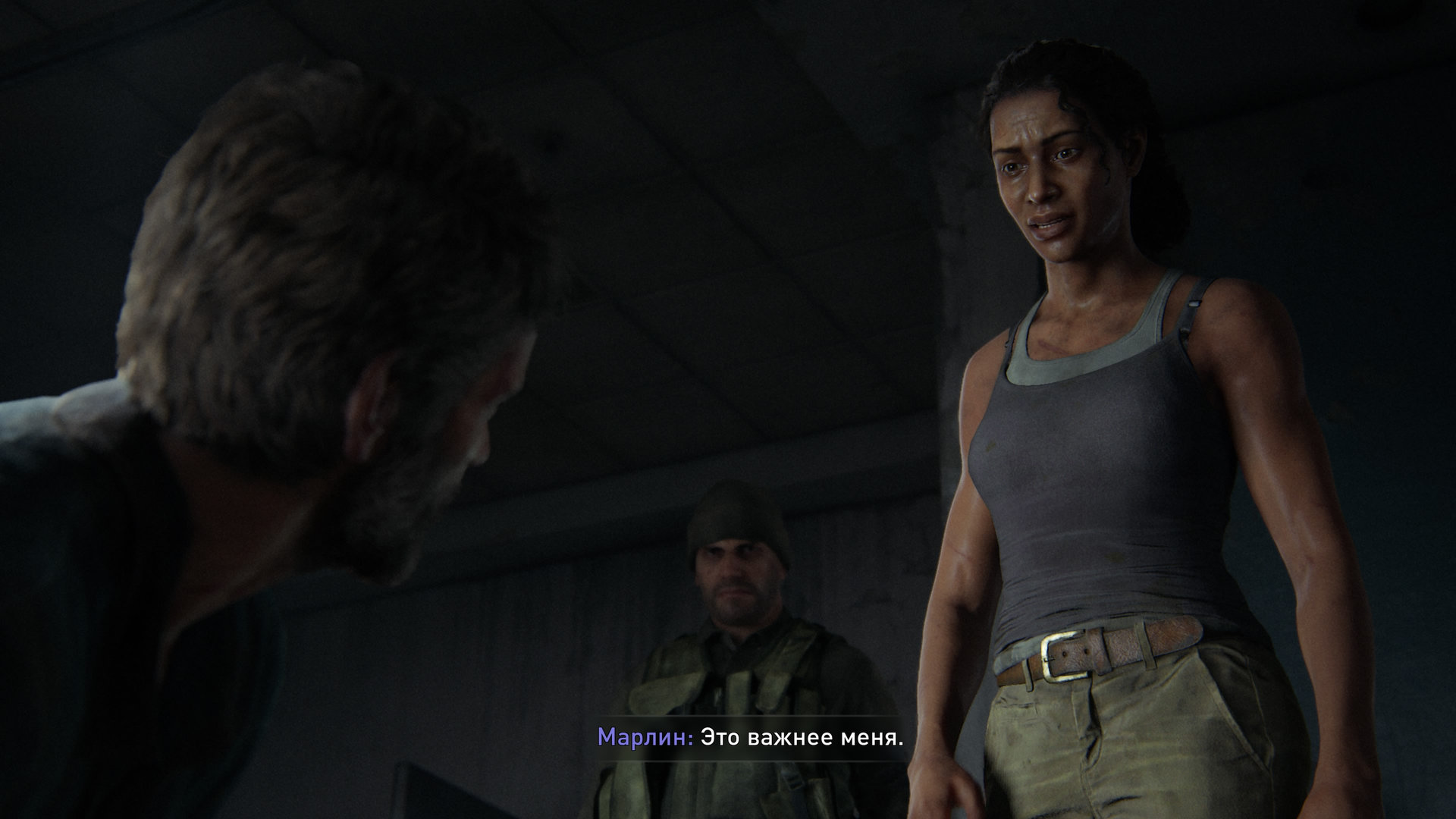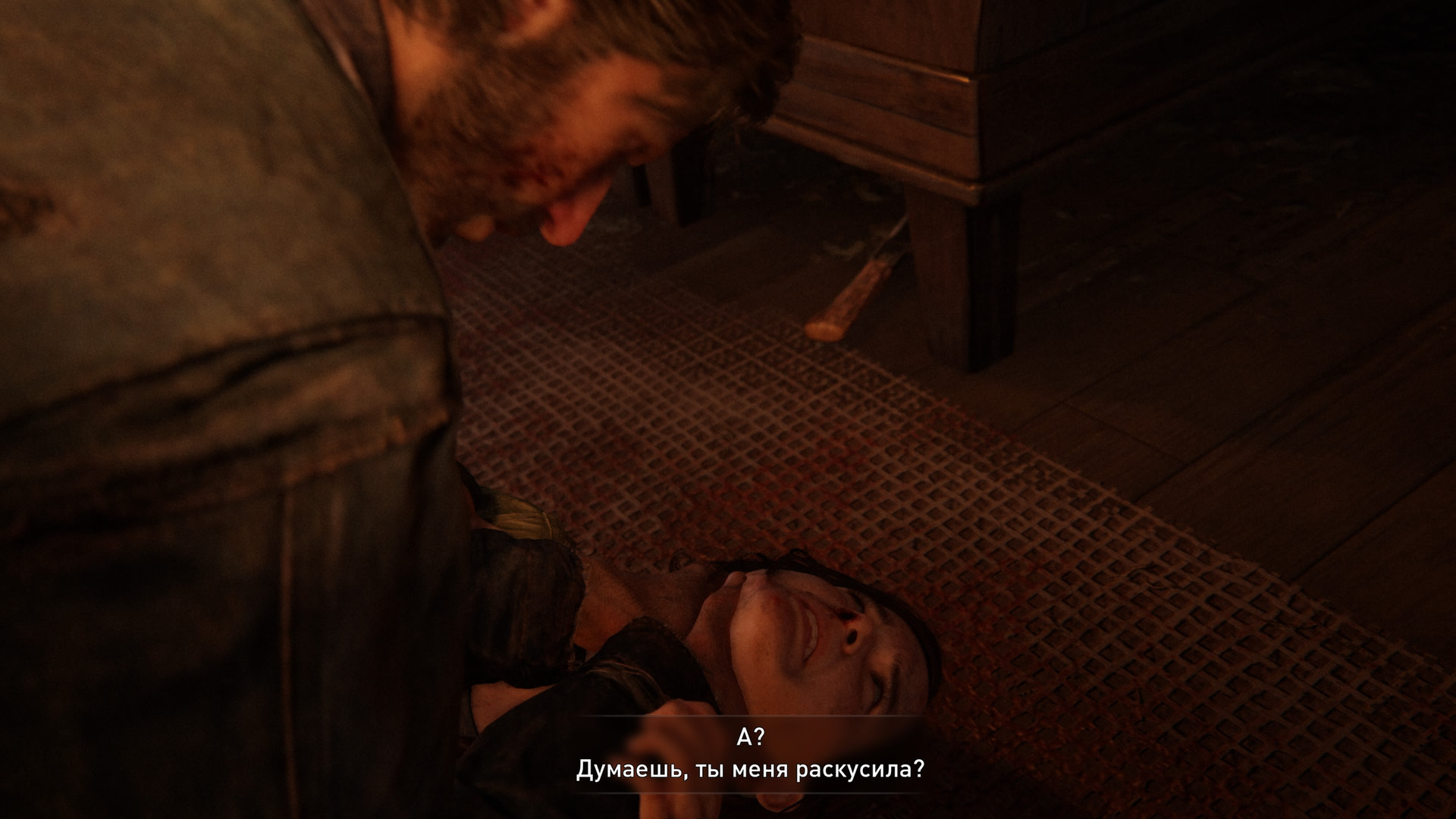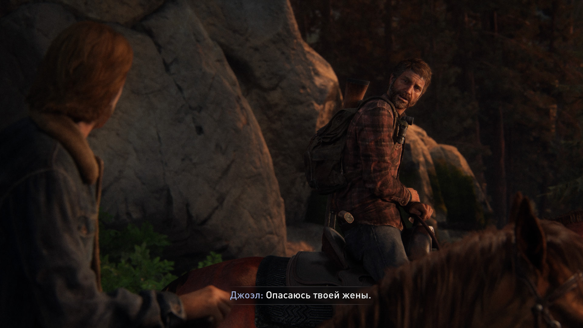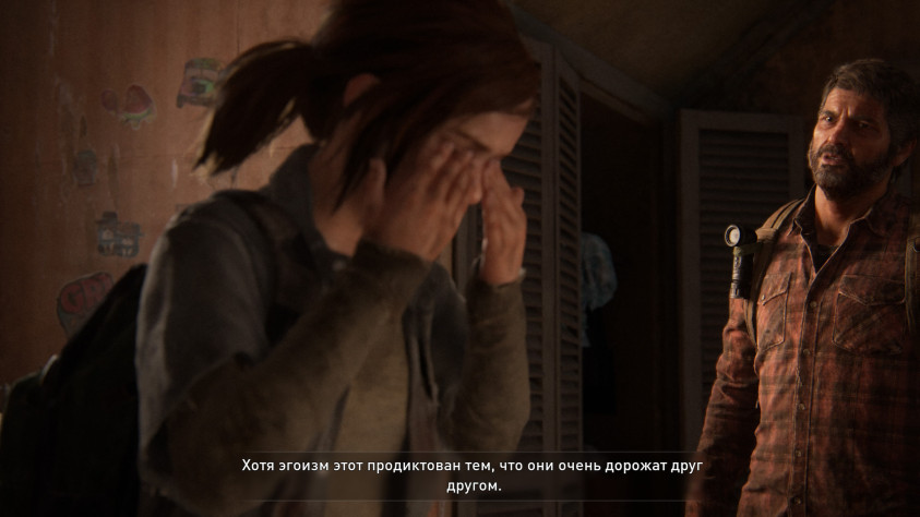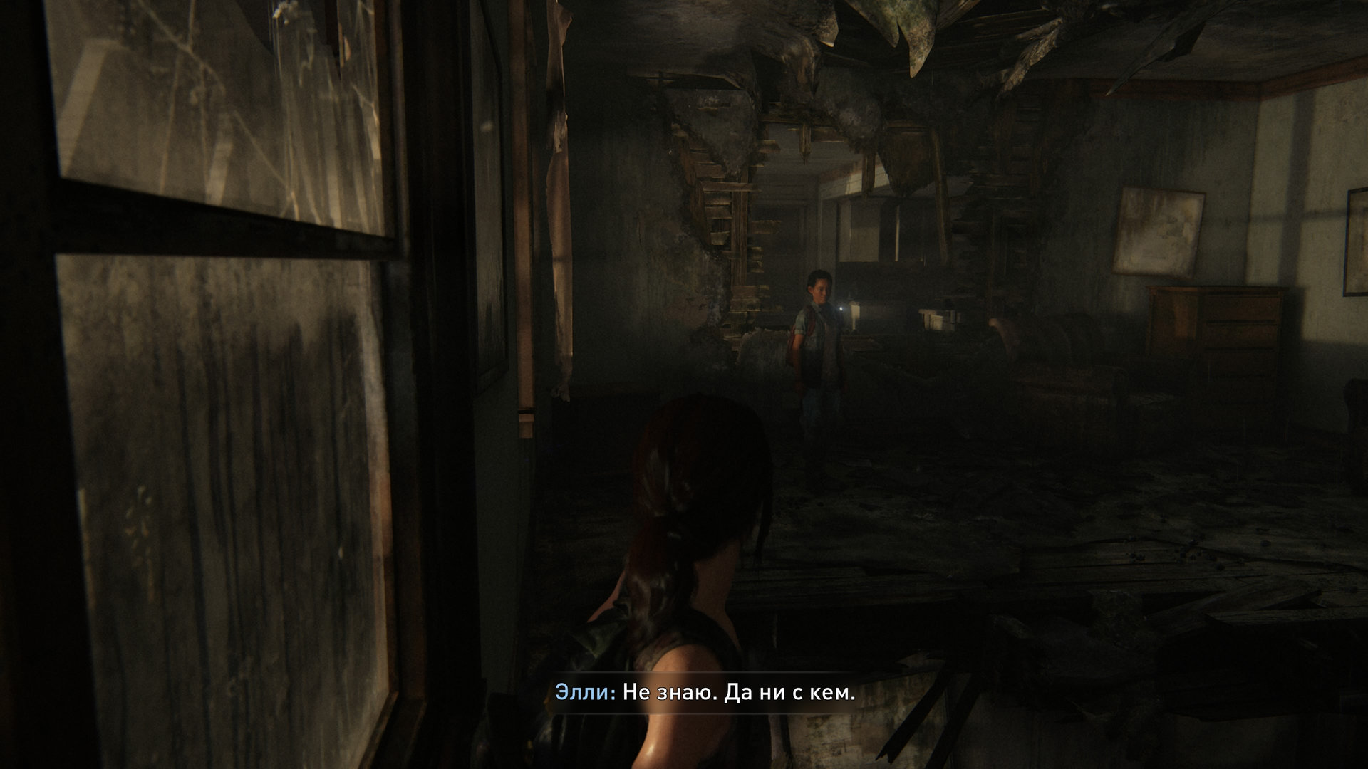 Возможно, читателю покажется странным, с какой дотошностью я разбираю фрагмент длиной в 5 секунд, происходящий даже не в рамках кат-сцены. Однако, пожалуй, каждый, кто знаком с сюжетом первой и второй частей TLoU, при повторном детальном рассмотрении этой сцены могут поразиться, с какой полнотой этот небольшой отрезок отражает суть характеров Джоэла и Томми.