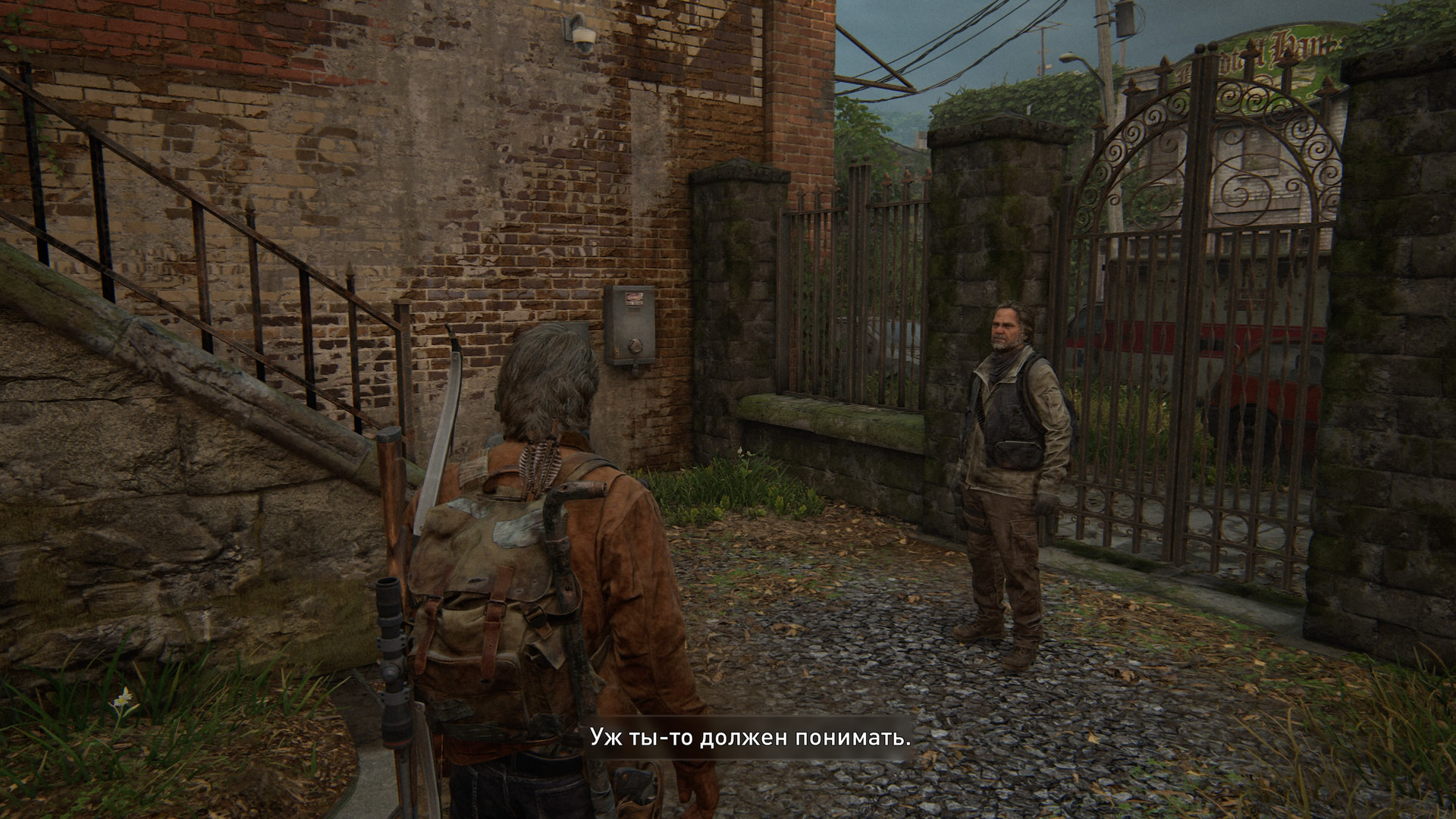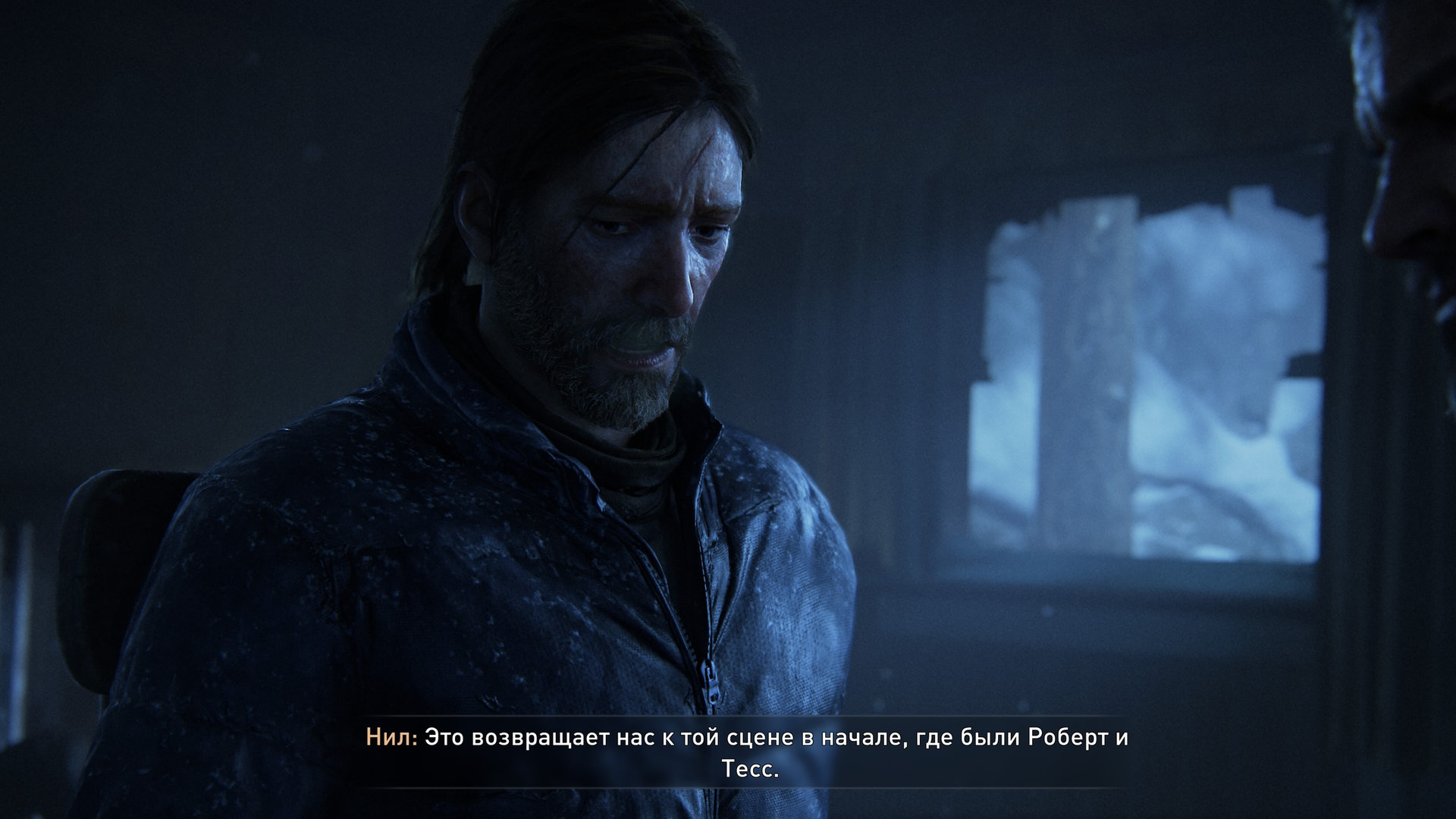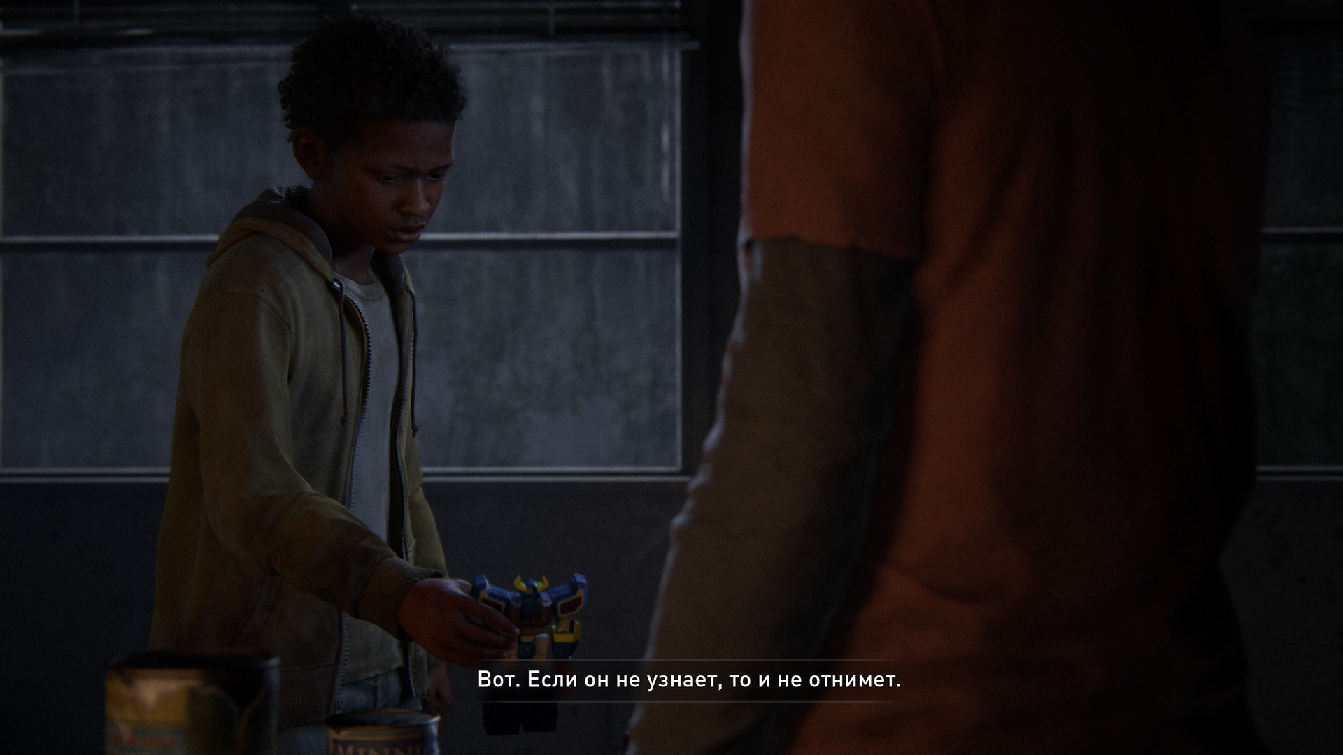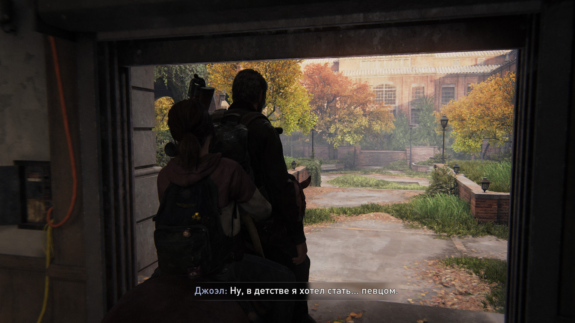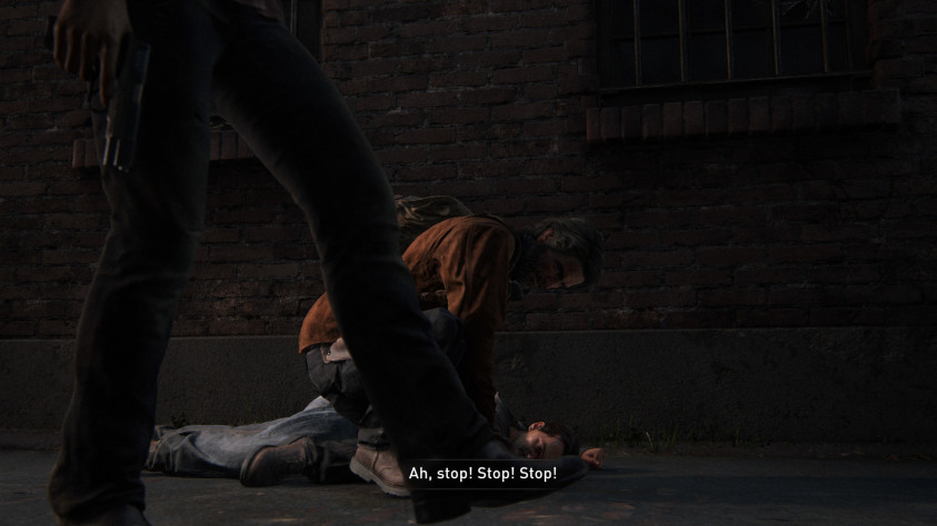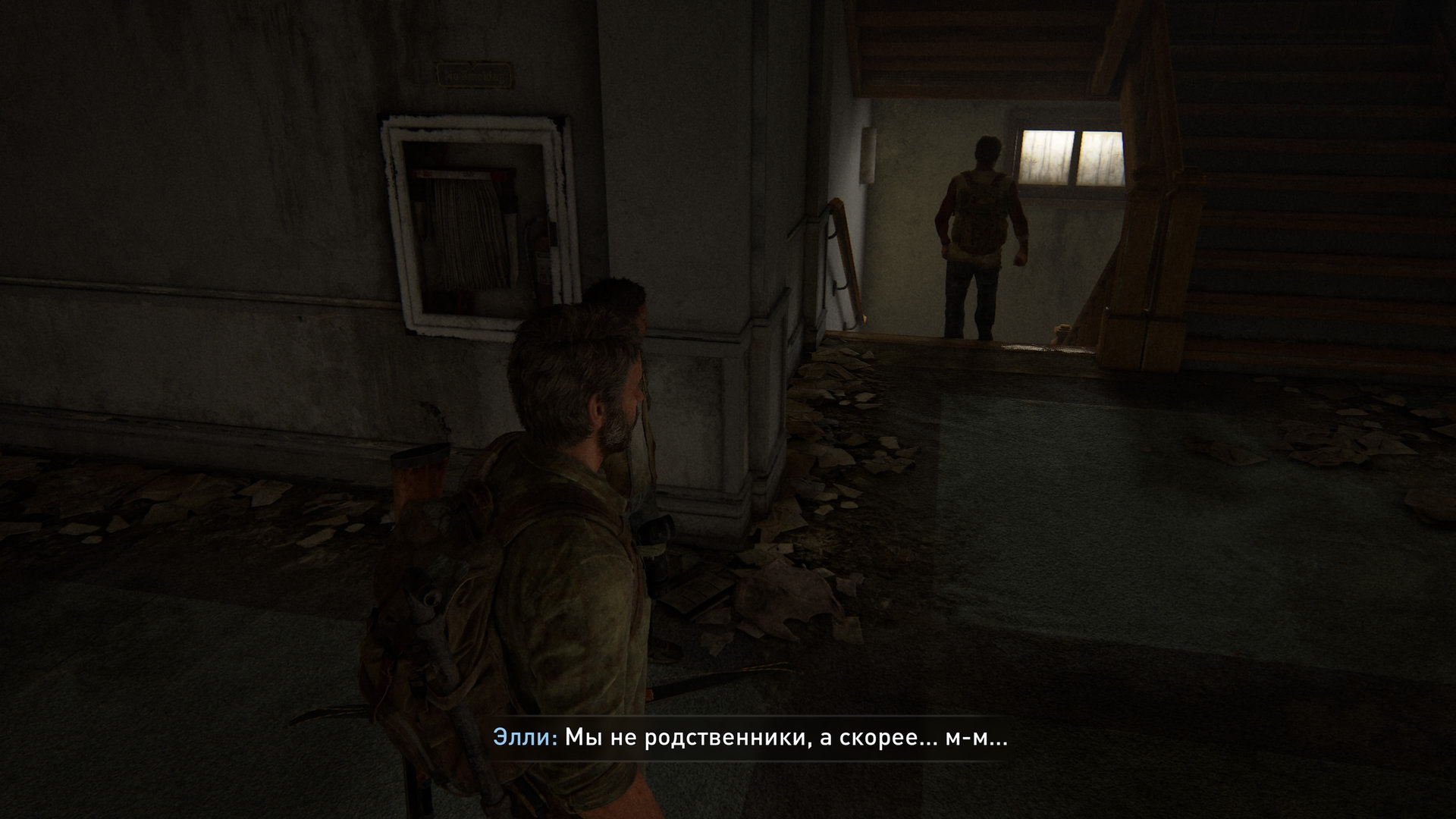 Возможно, читателю покажется странным, с какой дотошностью я разбираю фрагмент длиной в 5 секунд, происходящий даже не в рамках кат-сцены. Однако, пожалуй, каждый, кто знаком с сюжетом первой и второй частей TLoU, при повторном детальном рассмотрении этой сцены могут поразиться, с какой полнотой этот небольшой отрезок отражает суть характеров Джоэла и Томми.