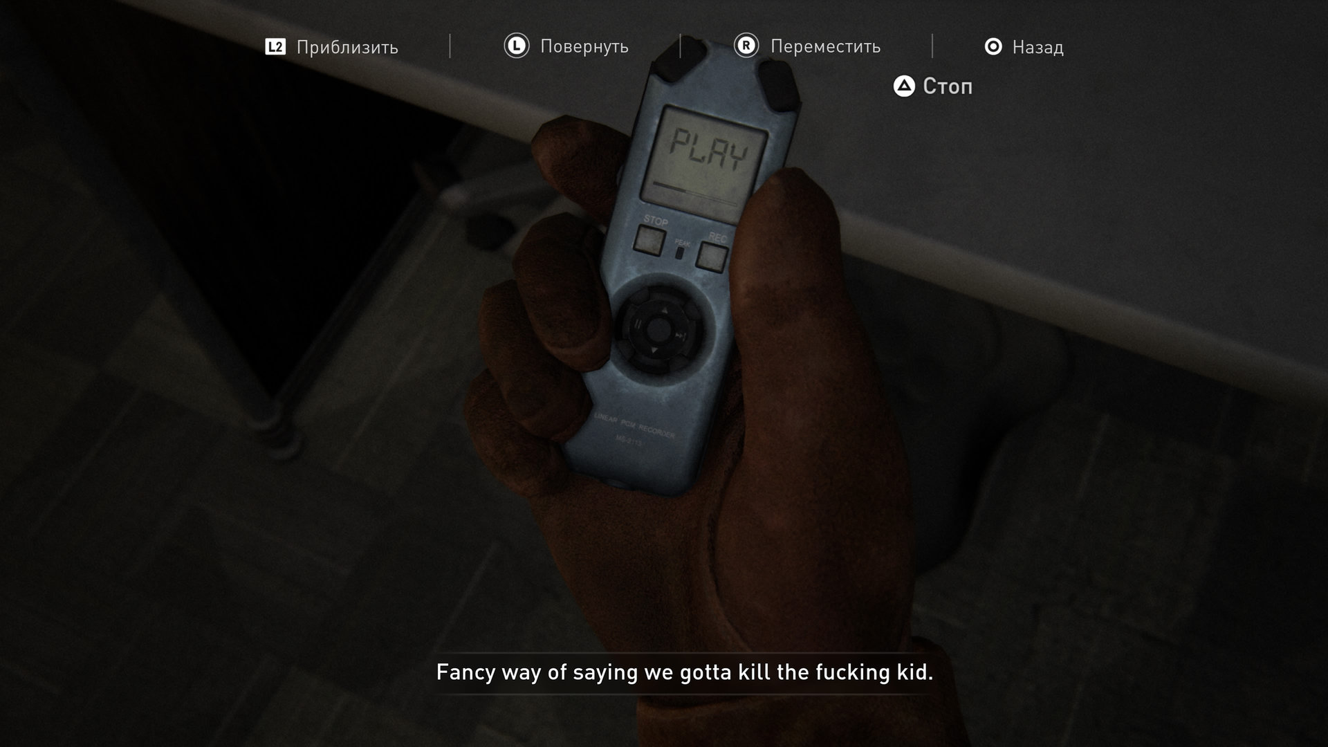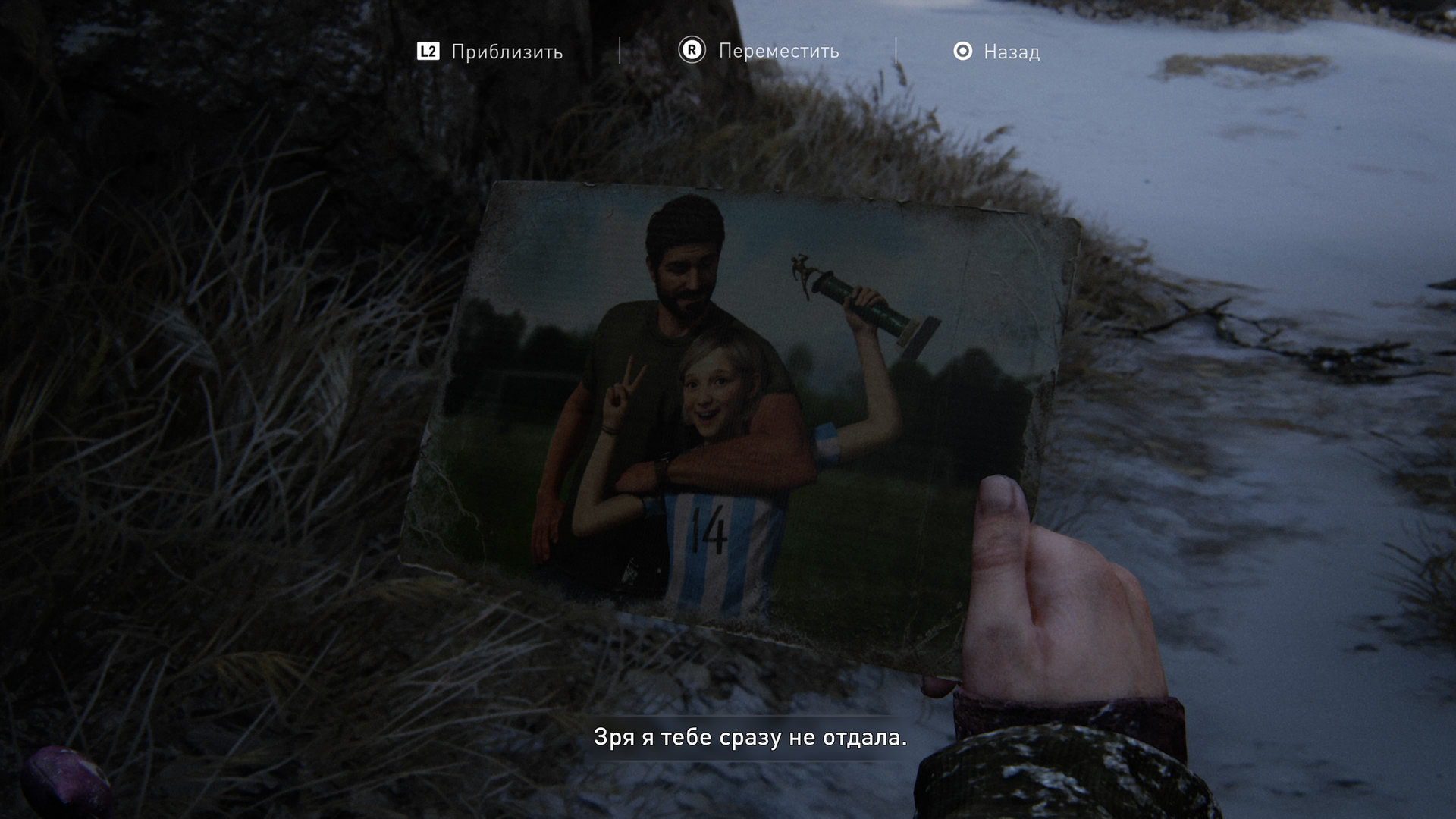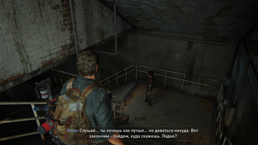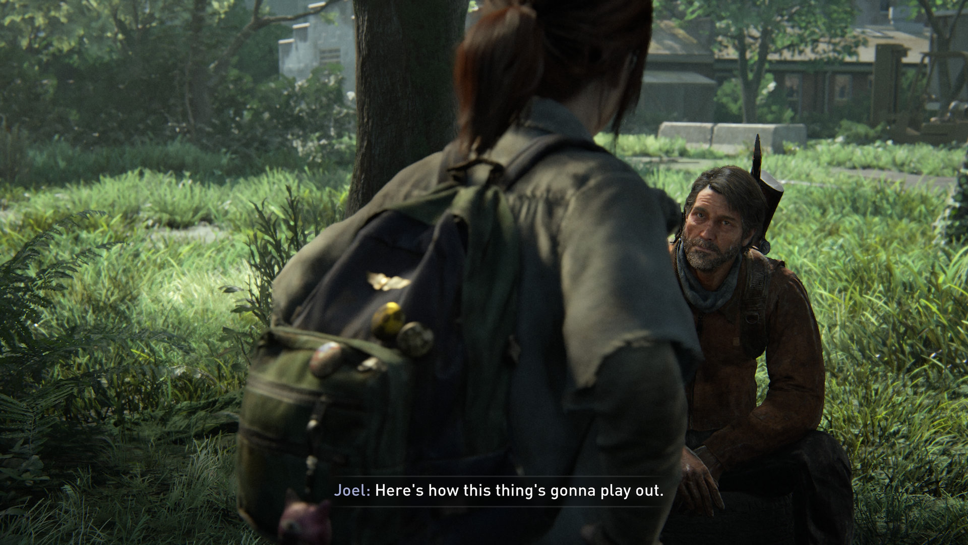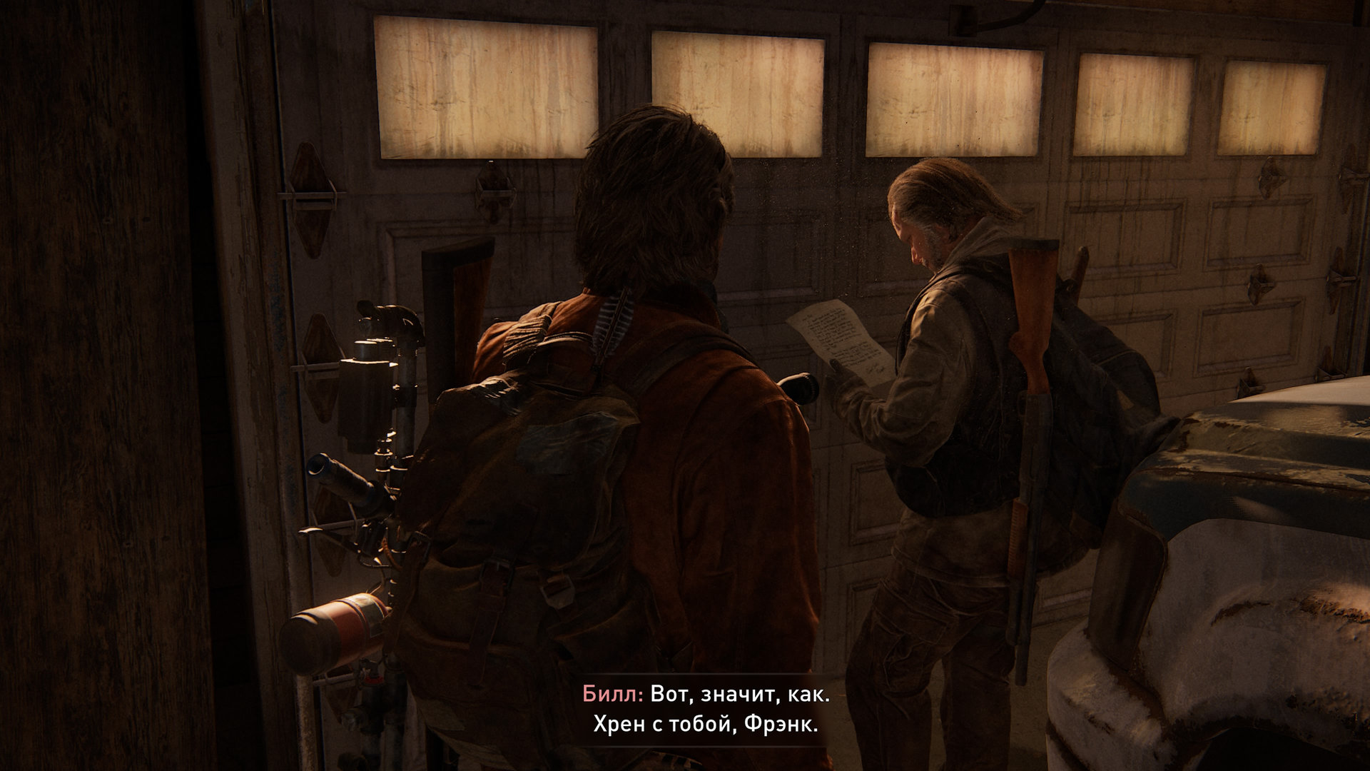 Возможно, читателю покажется странным, с какой дотошностью я разбираю фрагмент длиной в 5 секунд, происходящий даже не в рамках кат-сцены. Однако, пожалуй, каждый, кто знаком с сюжетом первой и второй частей TLoU, при повторном детальном рассмотрении этой сцены могут поразиться, с какой полнотой этот небольшой отрезок отражает суть характеров Джоэла и Томми.