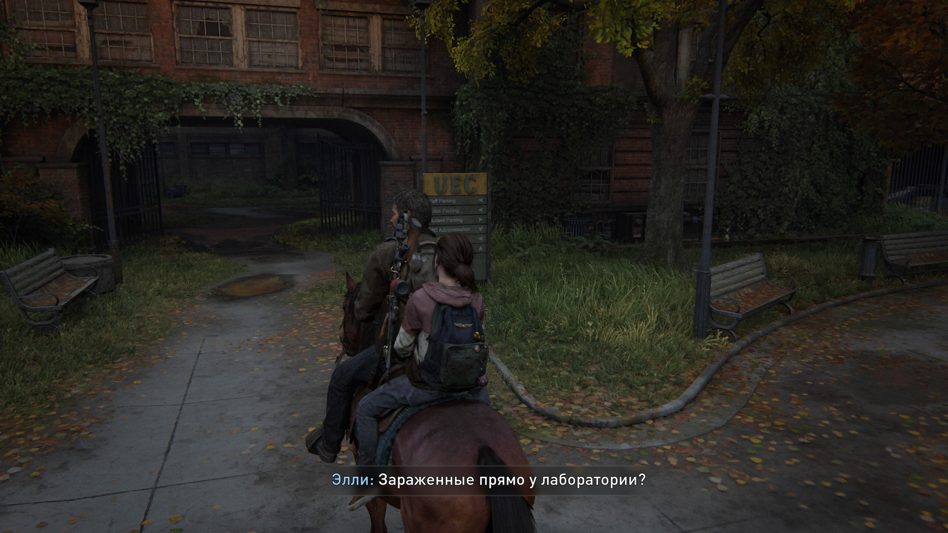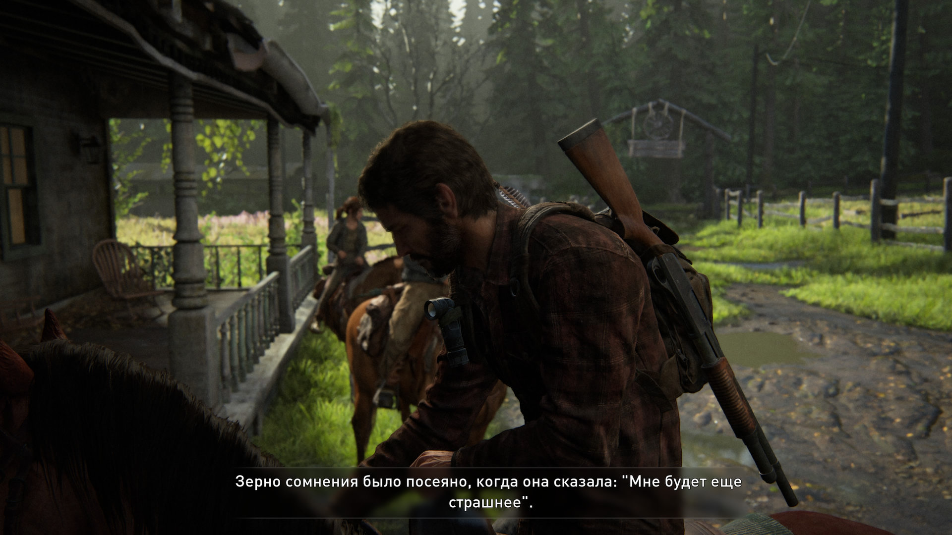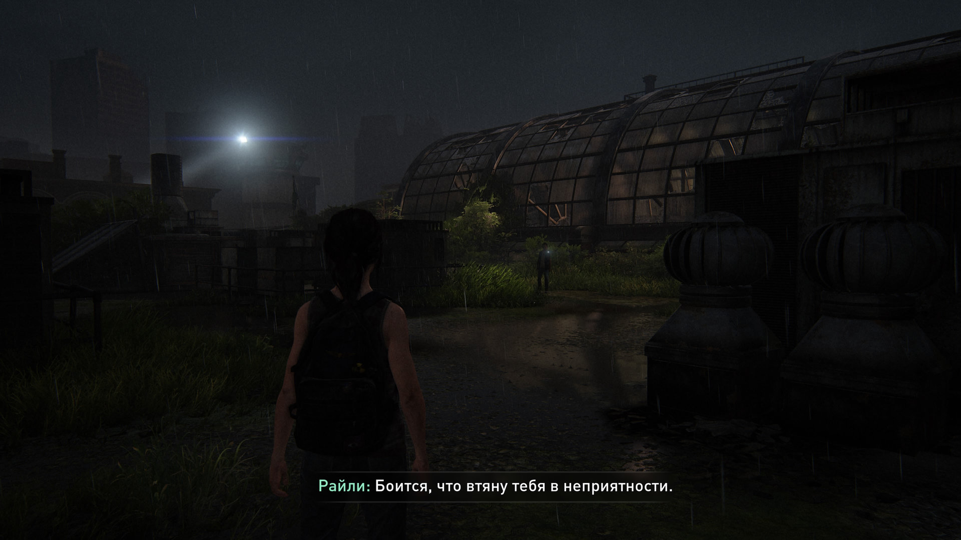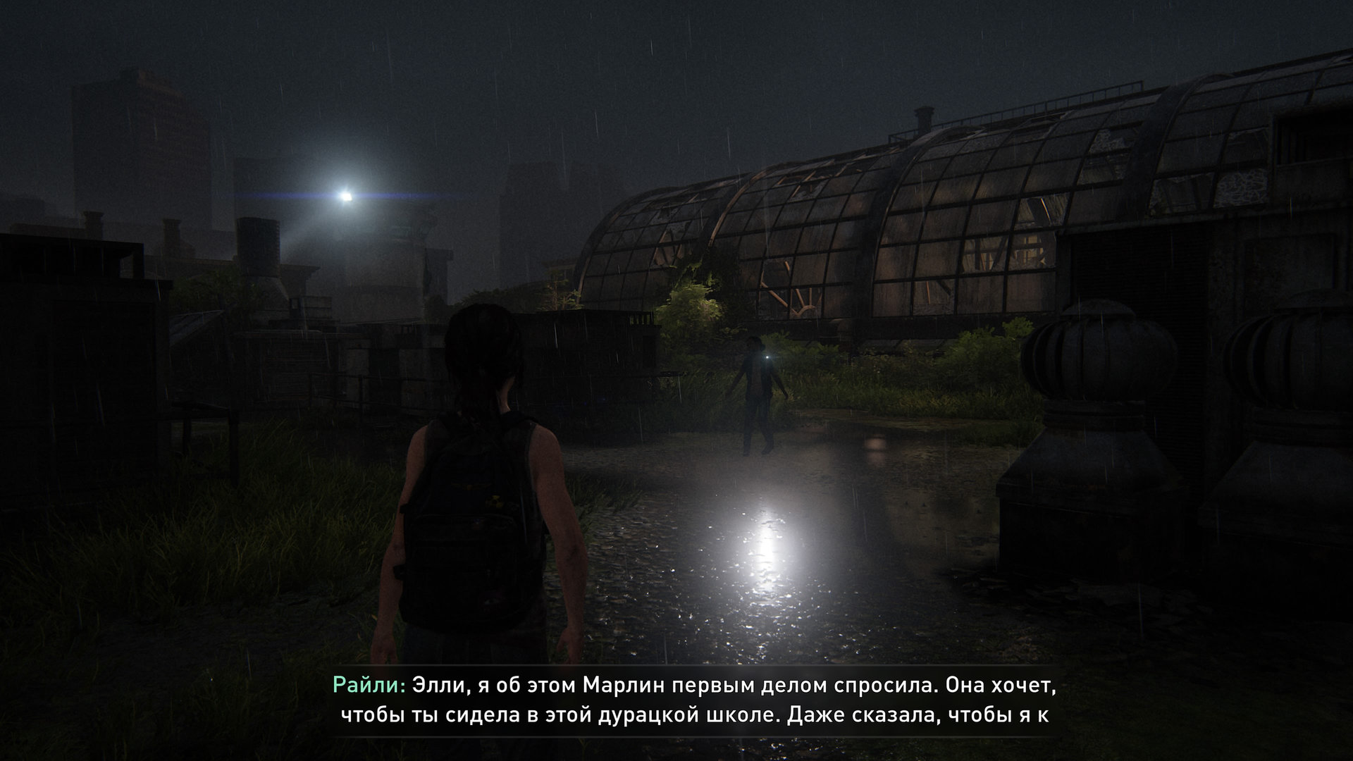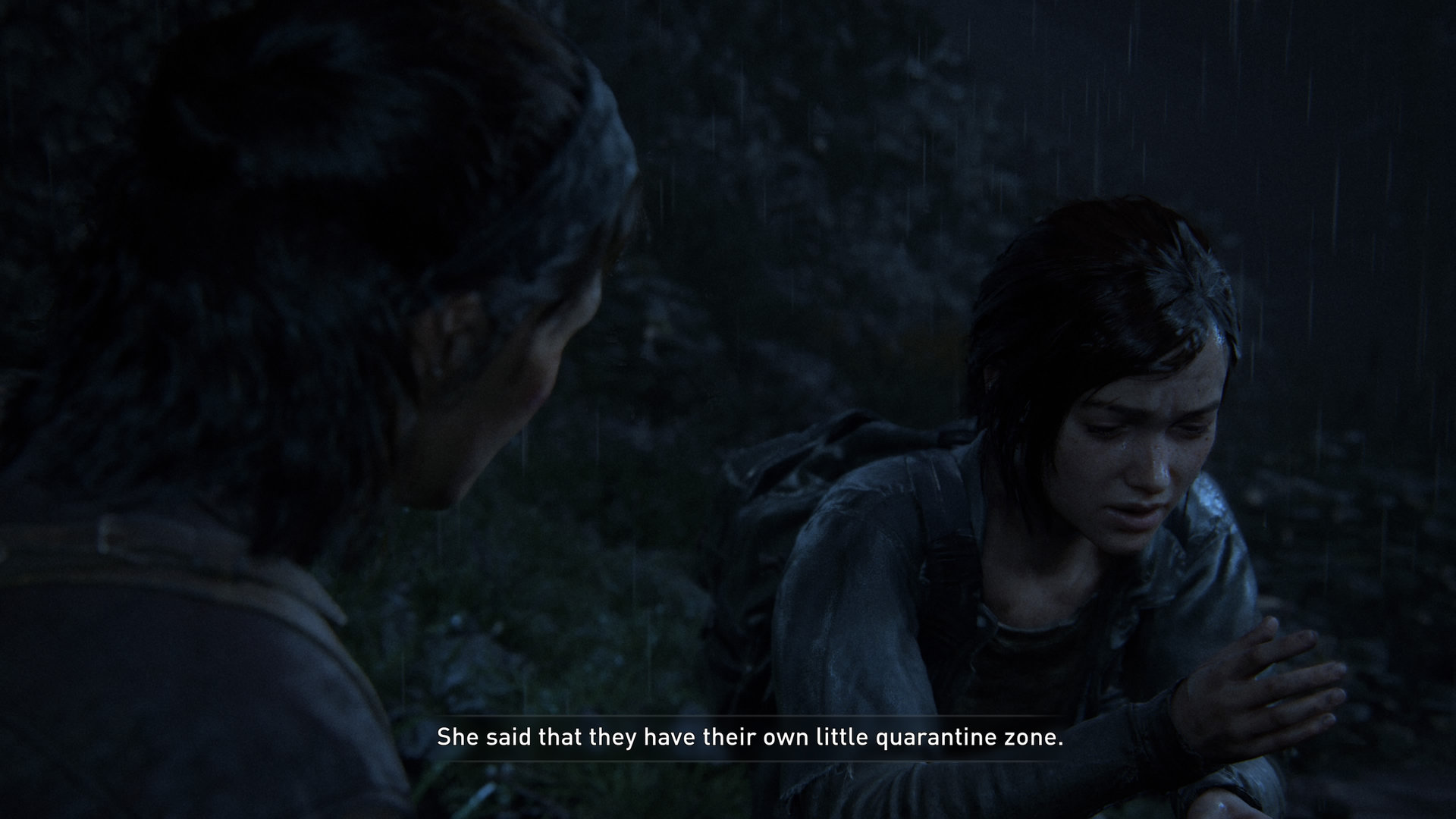 За этот сюжетный отрывок Элли успеет поведать Джоэлу и Тесс чуть больше про детали своего укуса на руке, однако, что наиболее примечательно, она не спешит раскрыть всю историю своего «заражения». Ее с Райли дружба — нечто очень личное, персональное, о чем героиня упорно умалчивала почти что всю первую часть.