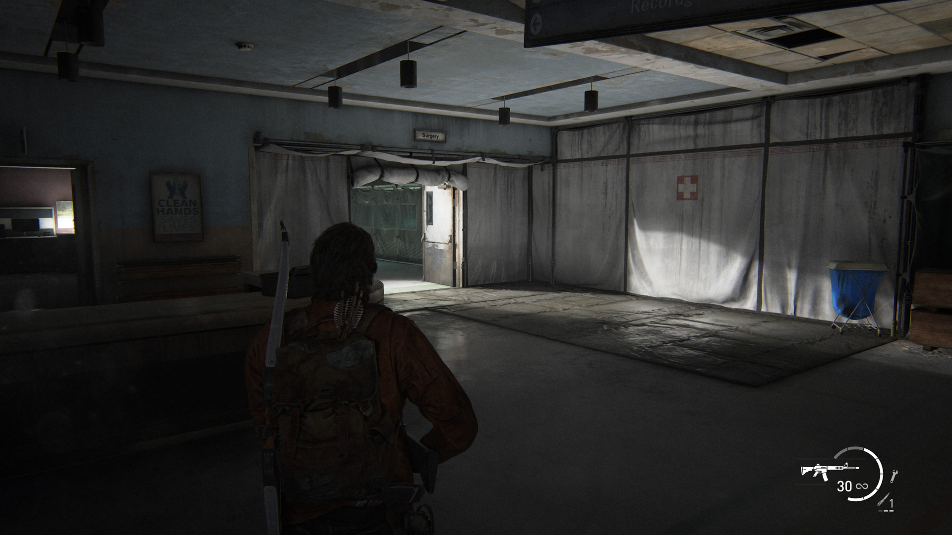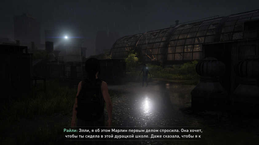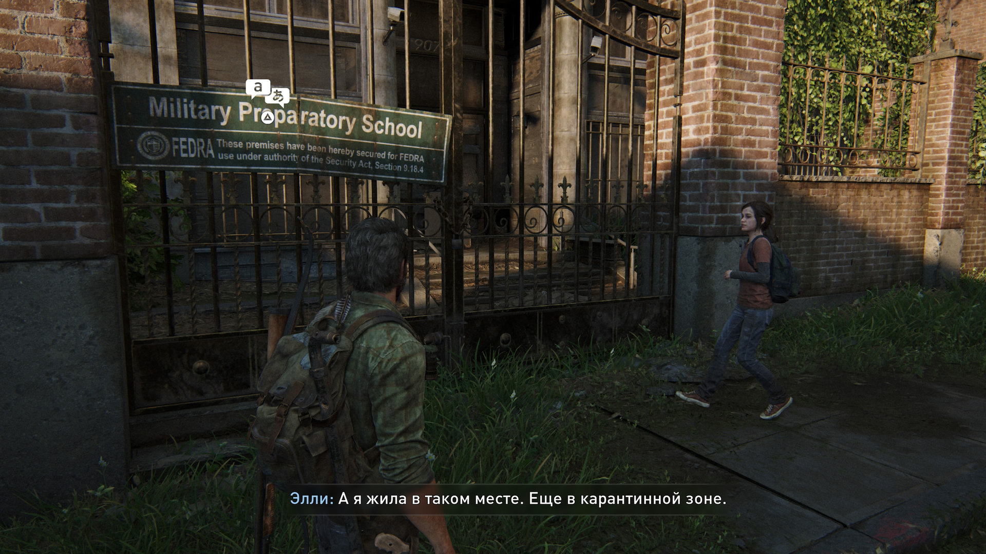 Элли застает Райли в ночи, пытающуюся тайком уйти из интерната. Между девушками зарождается определенная связь. Главная героиня решается пойти вместе со своей заступницей. В этом моменте хочется подчеркнуть интересную деталь дизайна окружения The Last of Us — игрок почти всегда видит визуальные ориентиры, позволяющие определить, какой путь прошли персонажи.