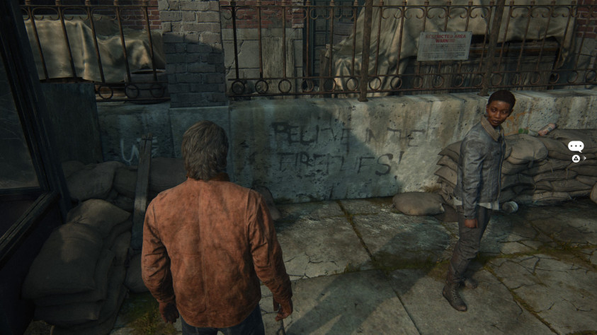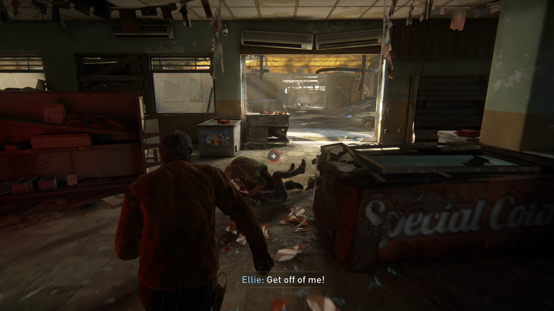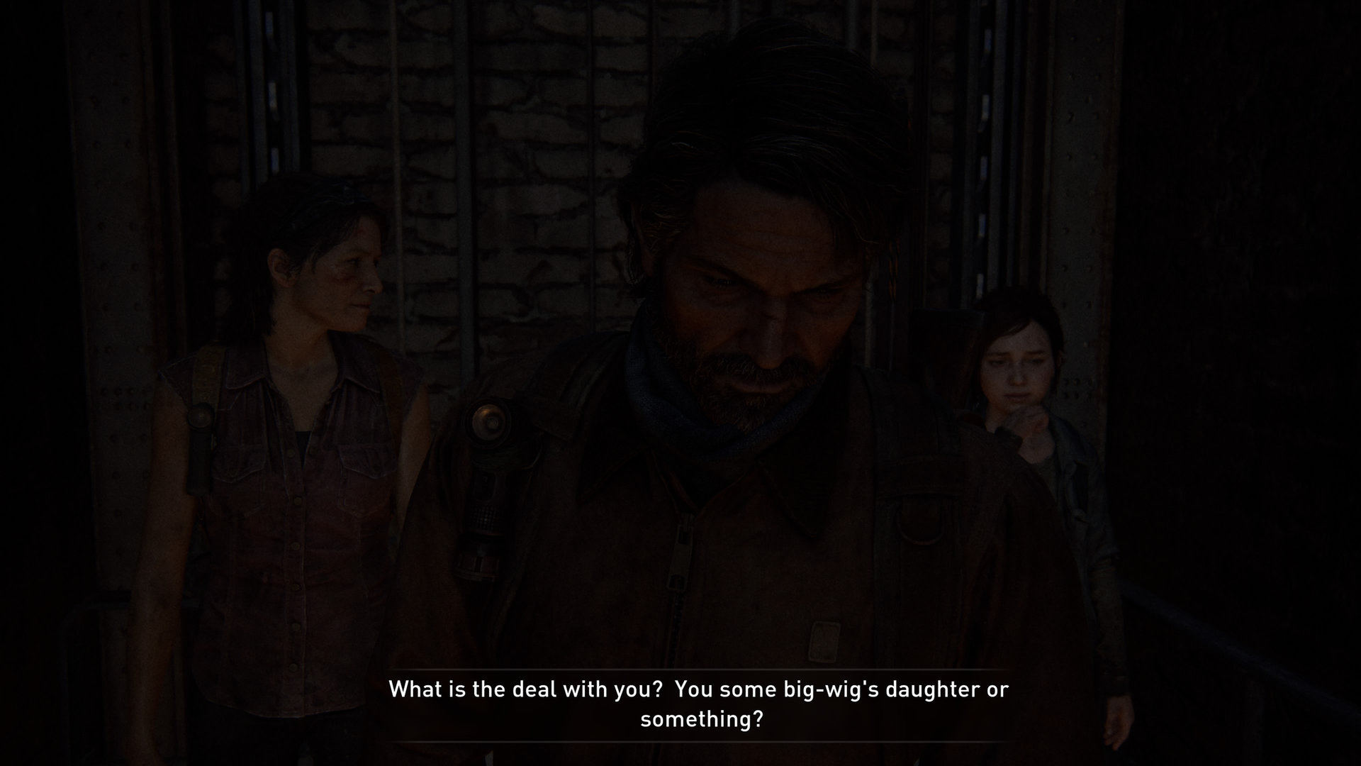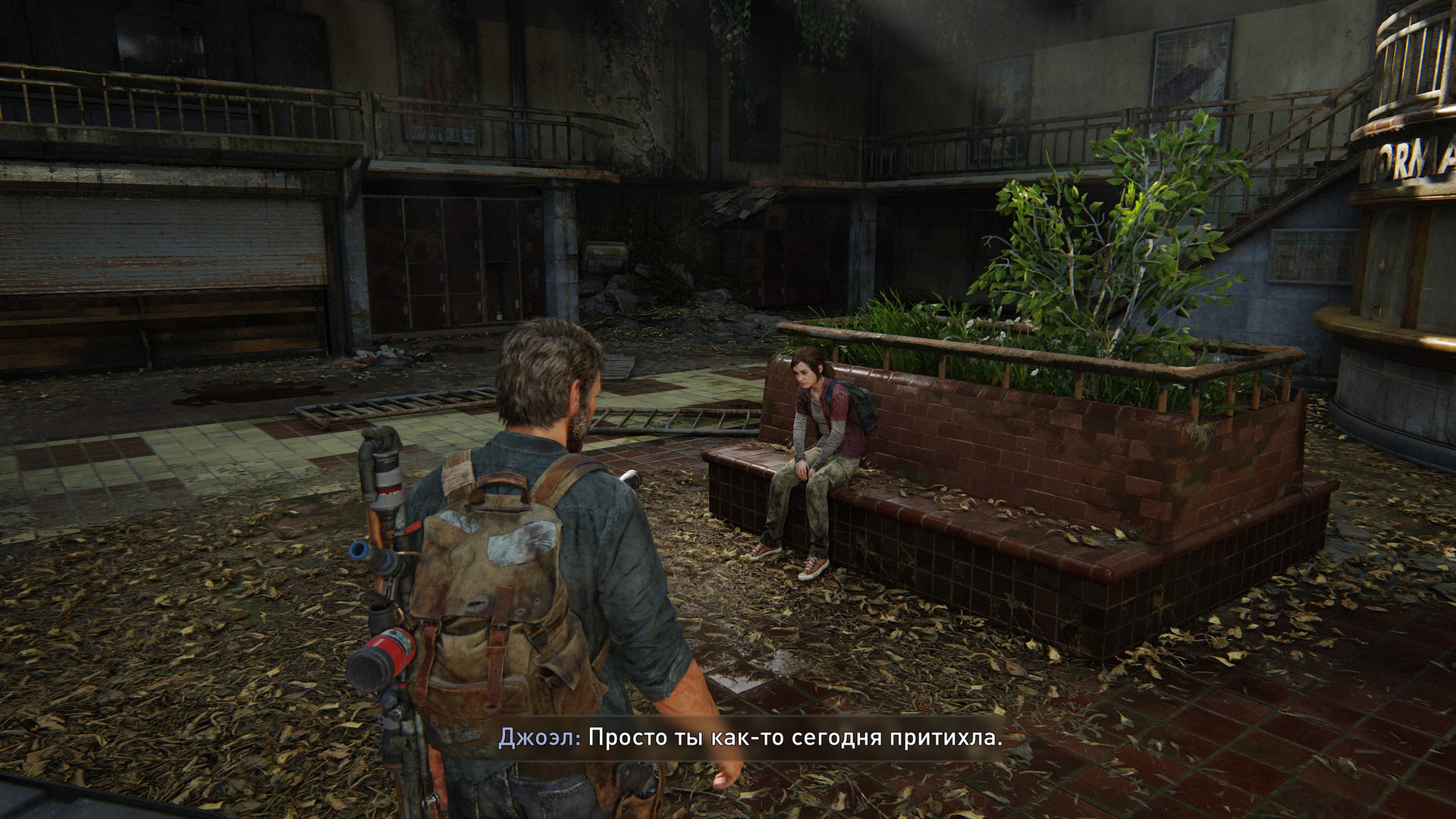 Непродолжительная прогулка с Элли ощущается сценой с изрядно затянувшимся неловким молчанием — Джоэл не проявляет никакого энтузиазма, общаясь со своей юной спутницей, пытаясь относиться к ней буквально как к грузу. Лишь ближе к концу геймплейного сегмента главный герой попытается вызнать у Элли причину, по которой она так важна для Марлин. Однако этот диалог едва ли можно назвать комплиментарным.