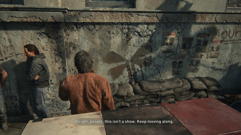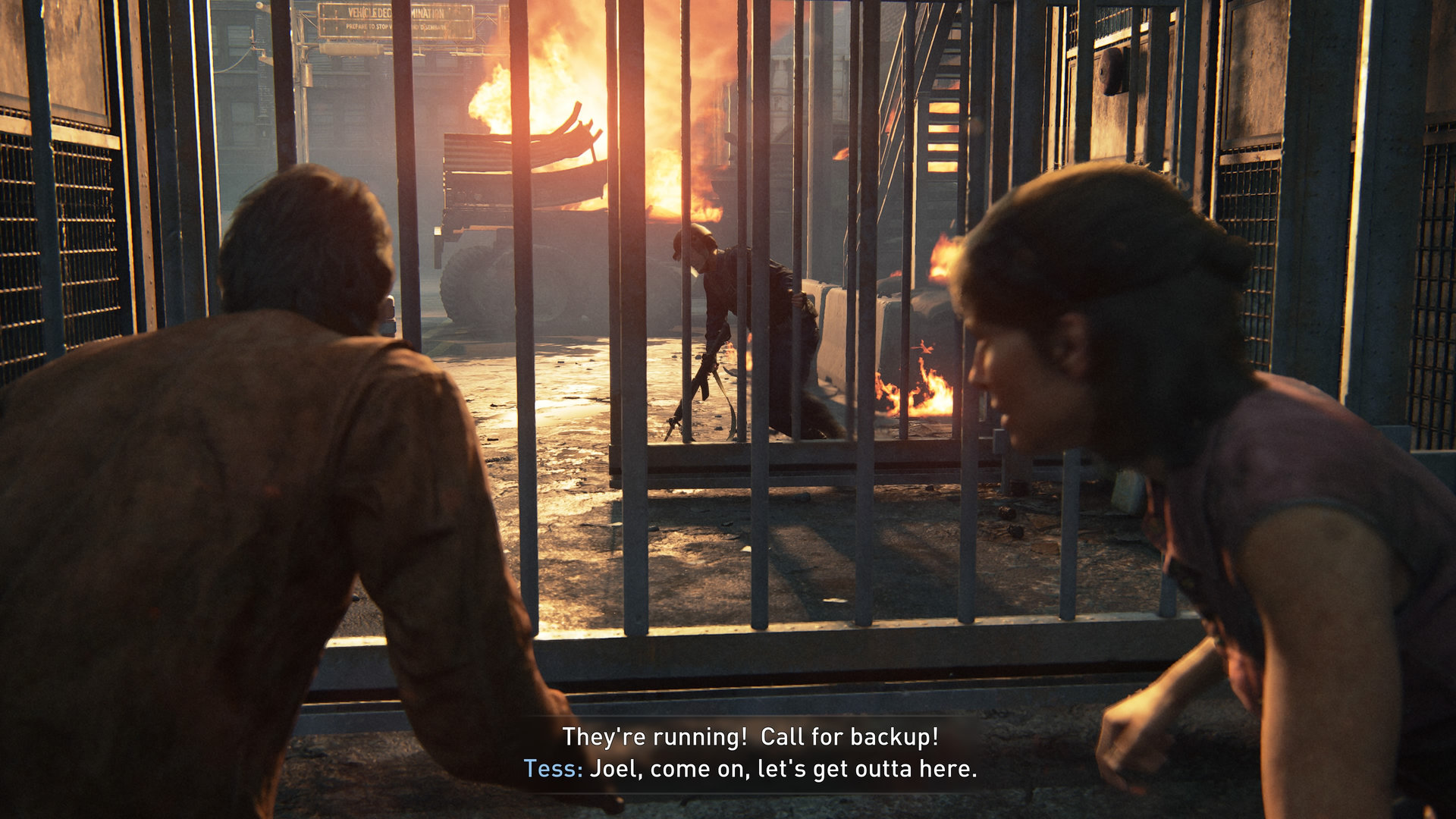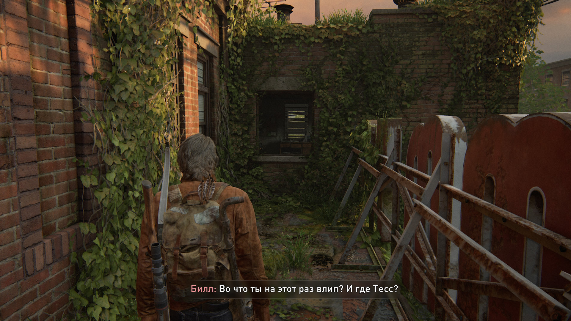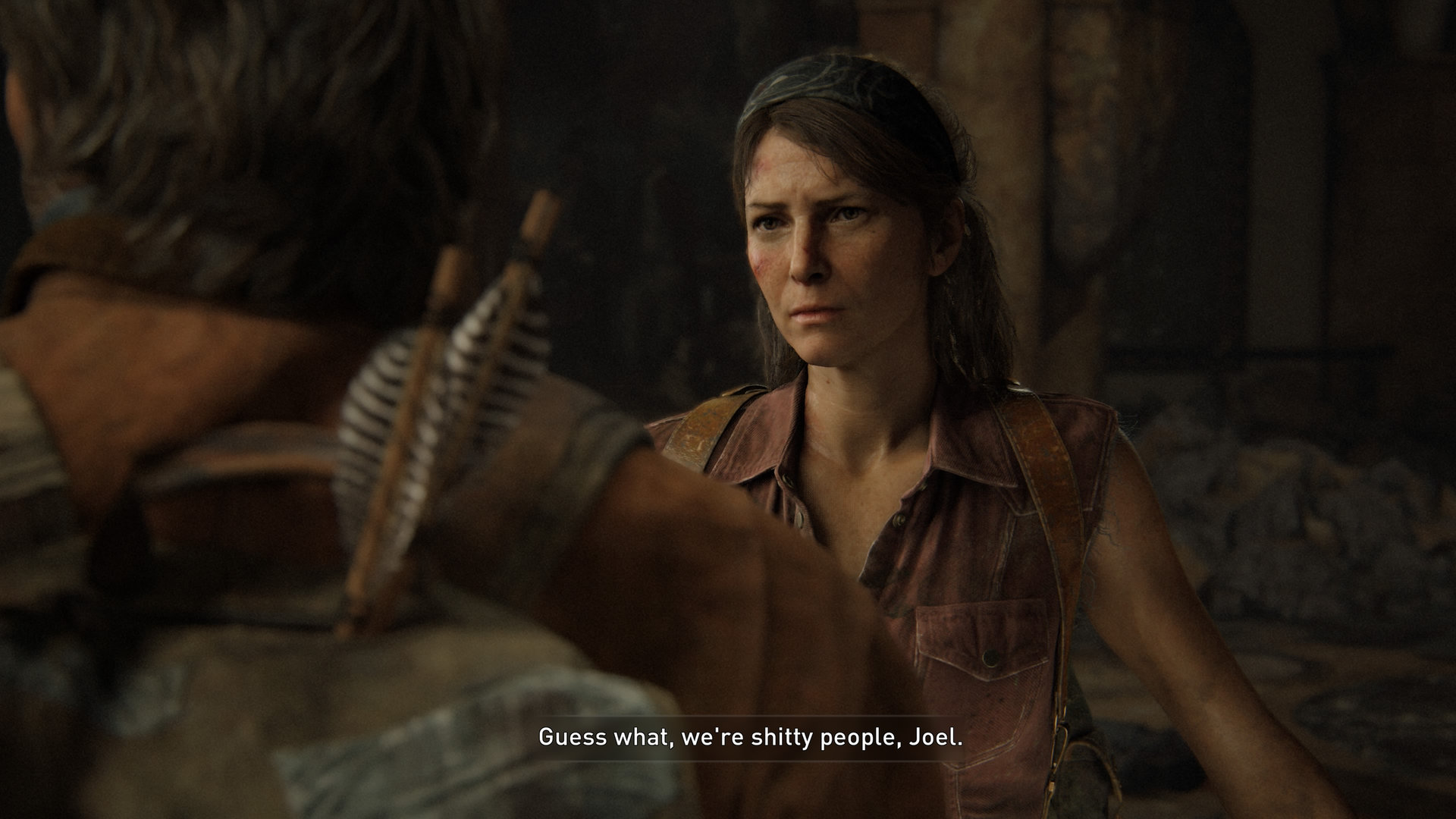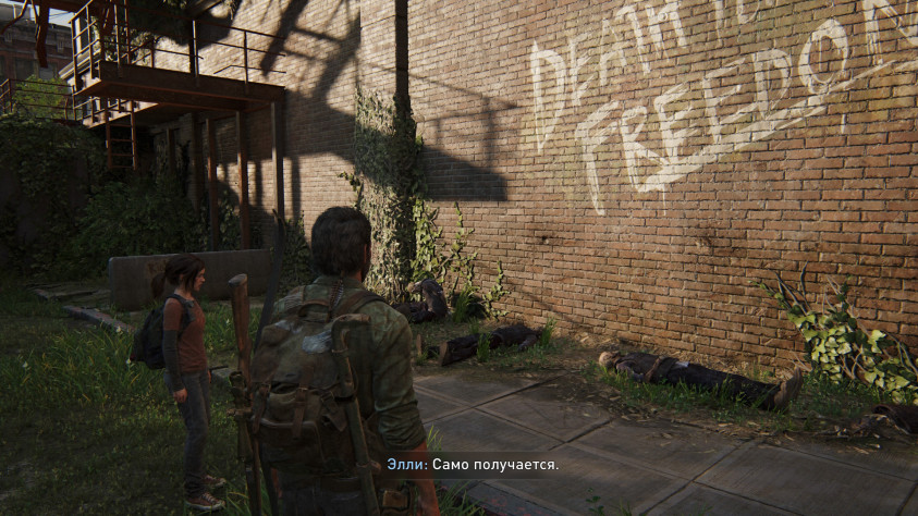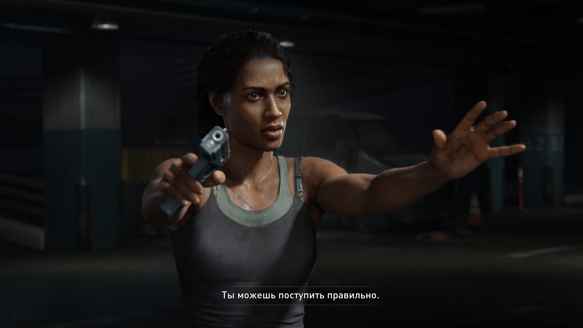Самое важное здесь — главный герой не верит во все сказанное, тогда как напарница все-таки пытается склонить его завершить эту работу. В качестве главного аргумента Тесс: «мы уже зашли далеко, давай просто закончим это». И с напарницей Джоэла трудно не согласится, ведь останавливаться на полпути бессмысленно. Так, устами персонажа Тесс сценаристы задают ключевую максиму дилогии The Last of Us, которой пока что следует только она, однако в дальнейшем этим кредо будет руководствоваться уже другой персонаж.