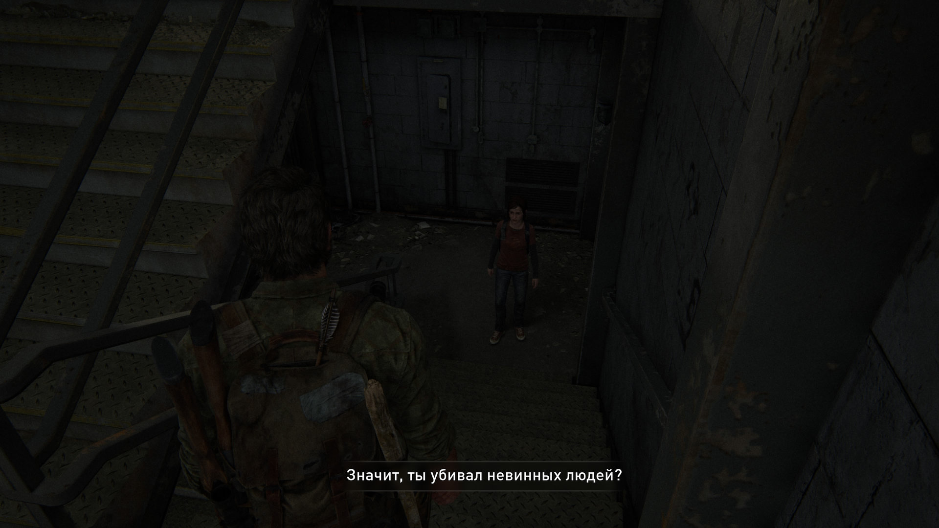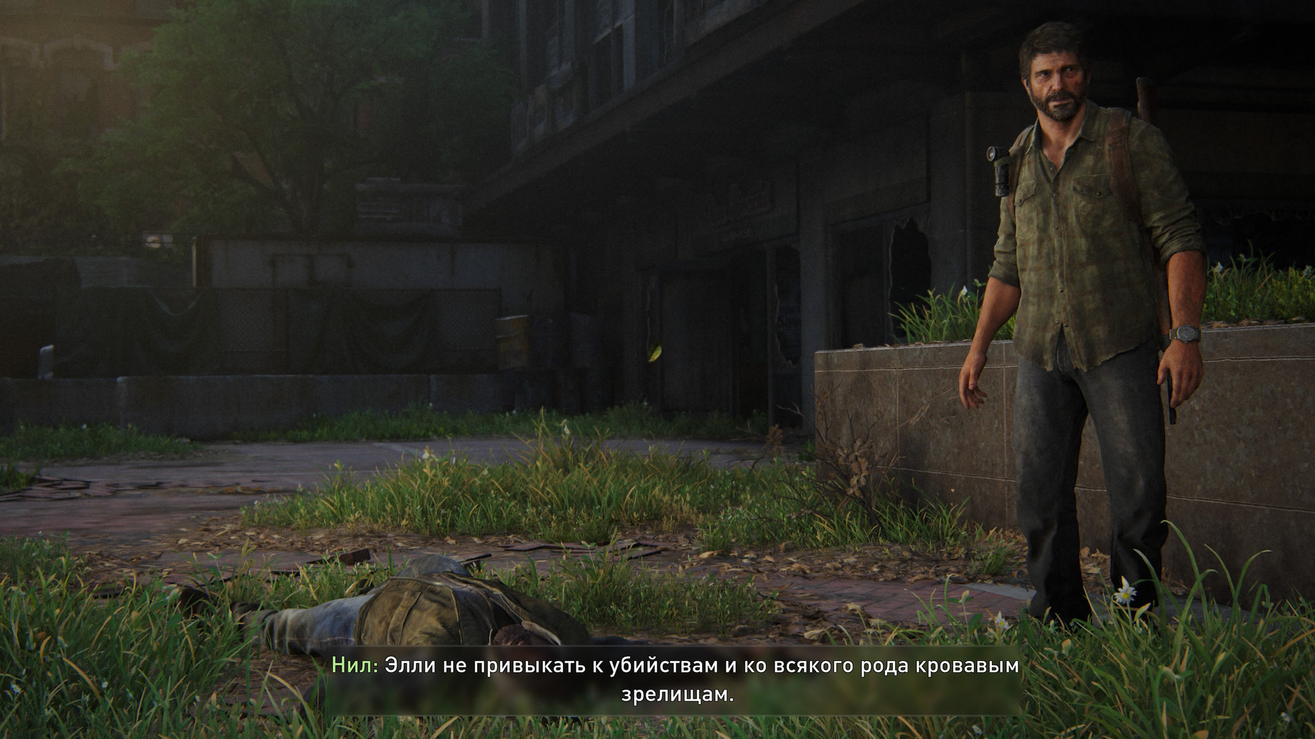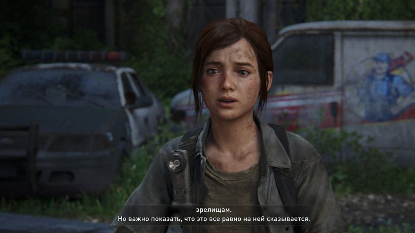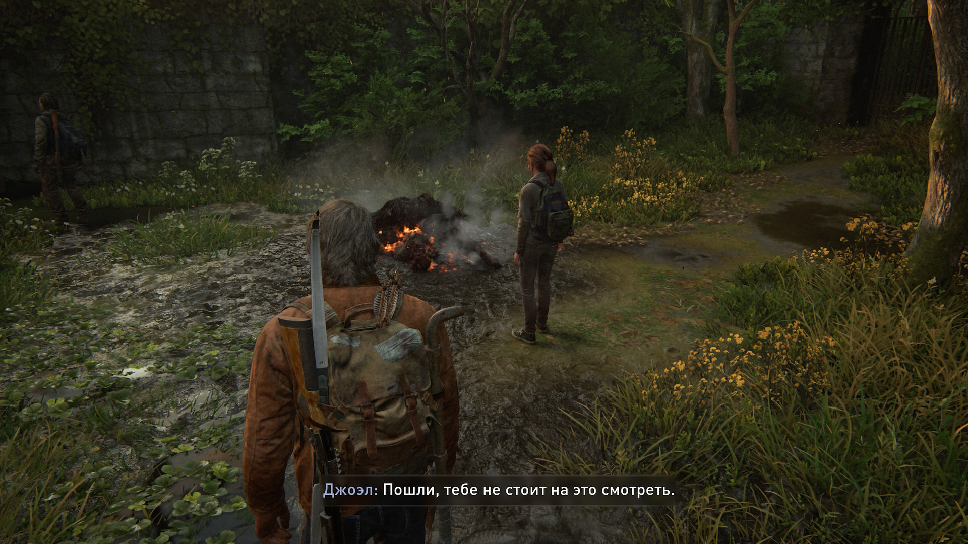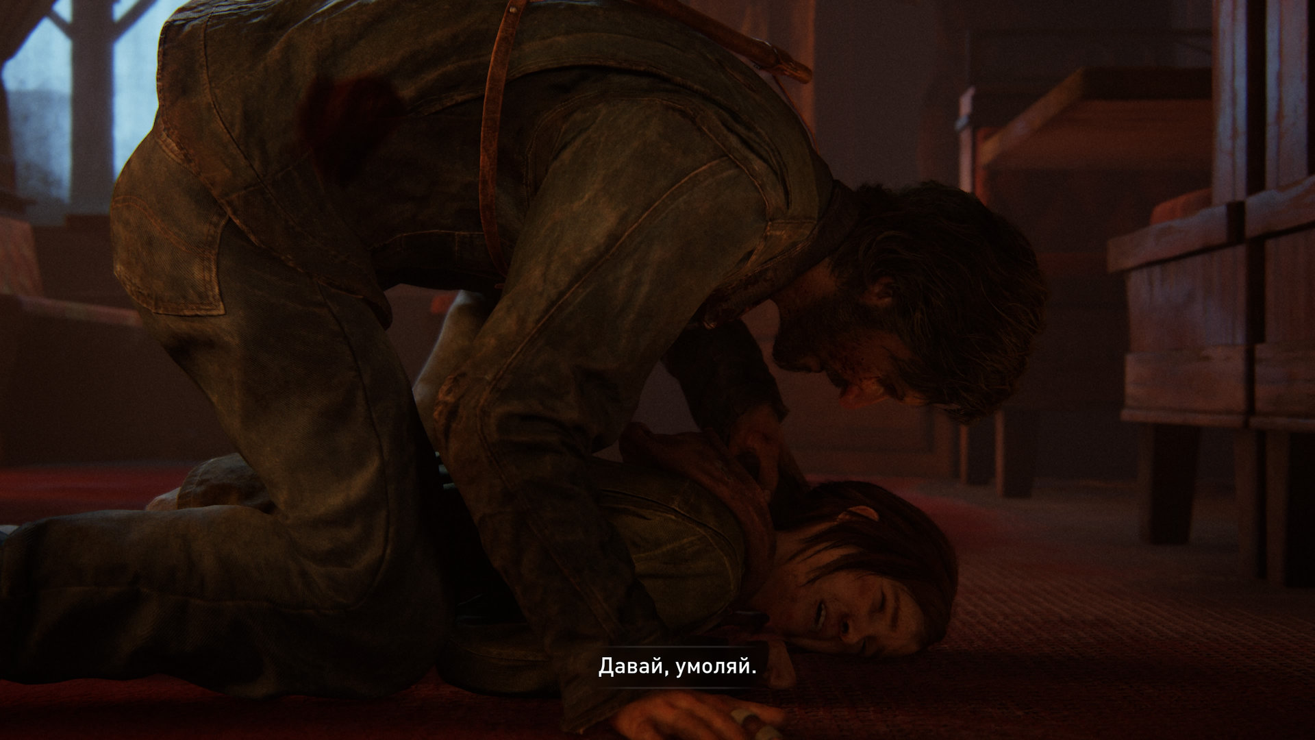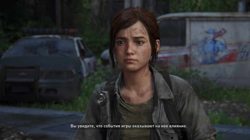 Здесь же можно лицезреть первый момент, когда Элли видит убийство, причем настолько вблизи — будем честны, это не самый лучший жизненный опыт, который может испытать девочка 13-ти лет. Безусловно, речь идет о суровом постапокалиптичном мире, однако подобное совершенно точно не проходит бесследно для психики героини.