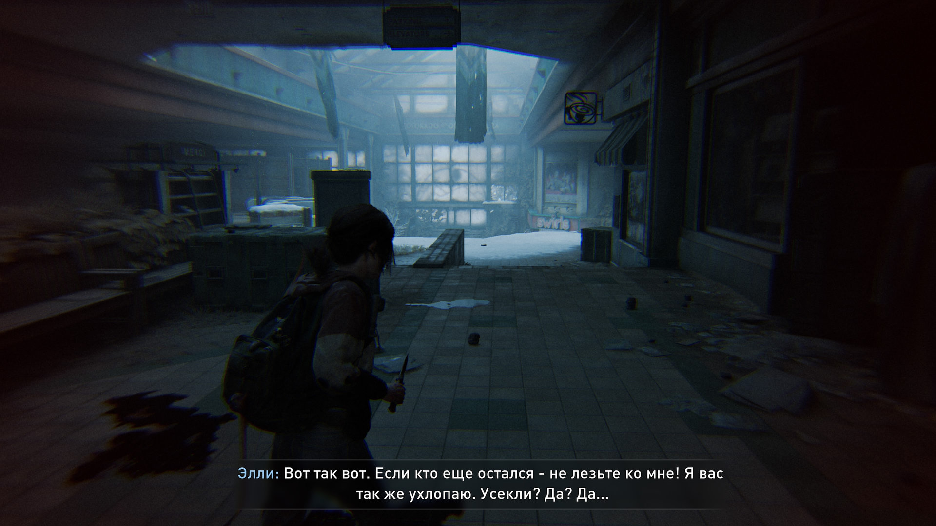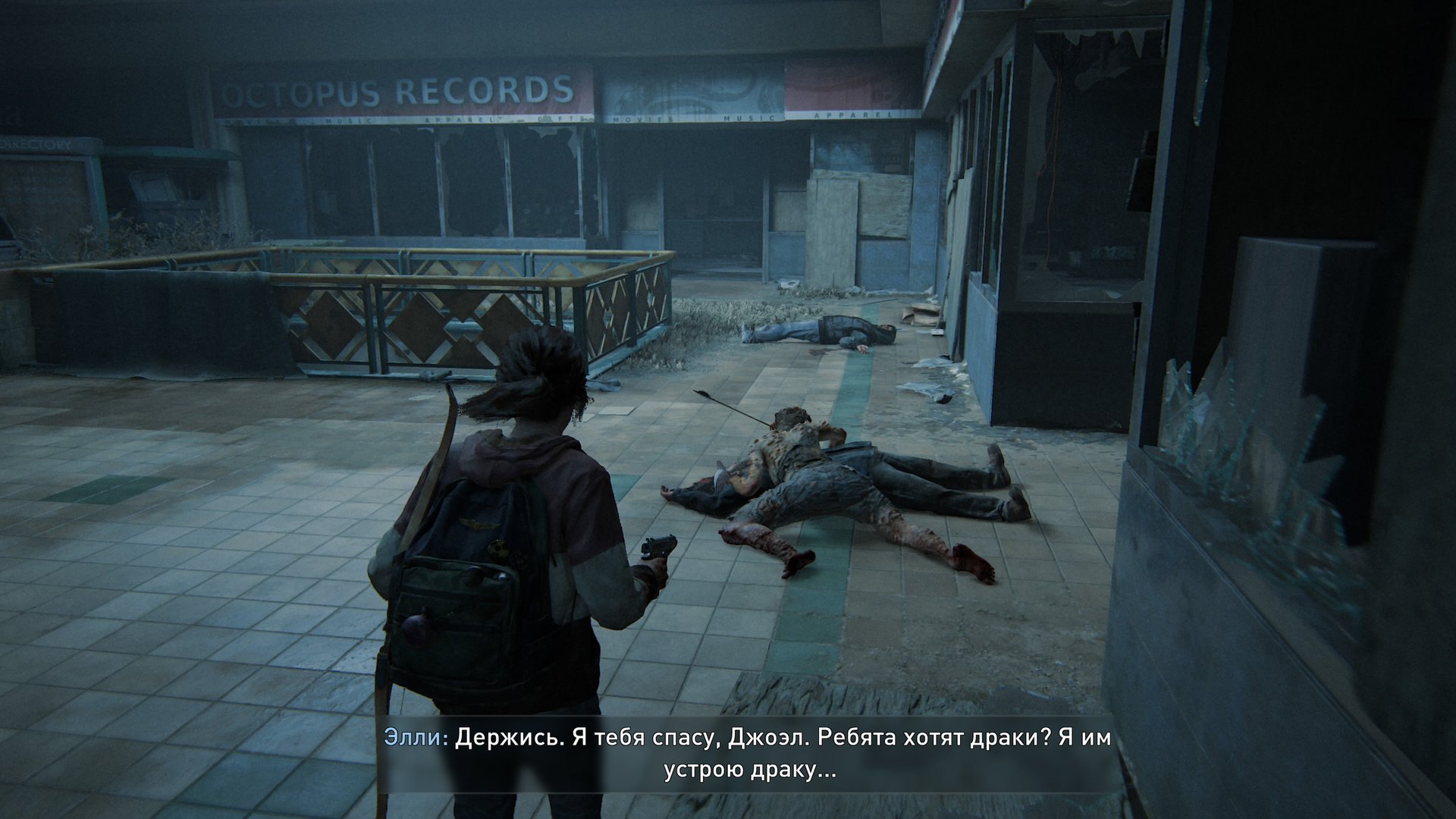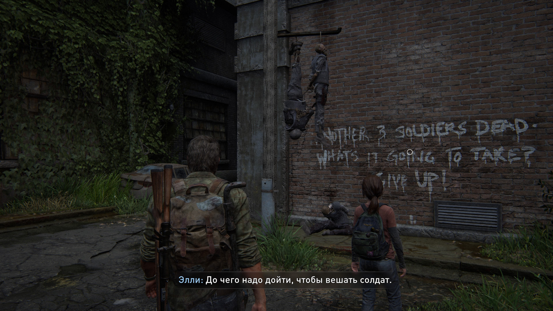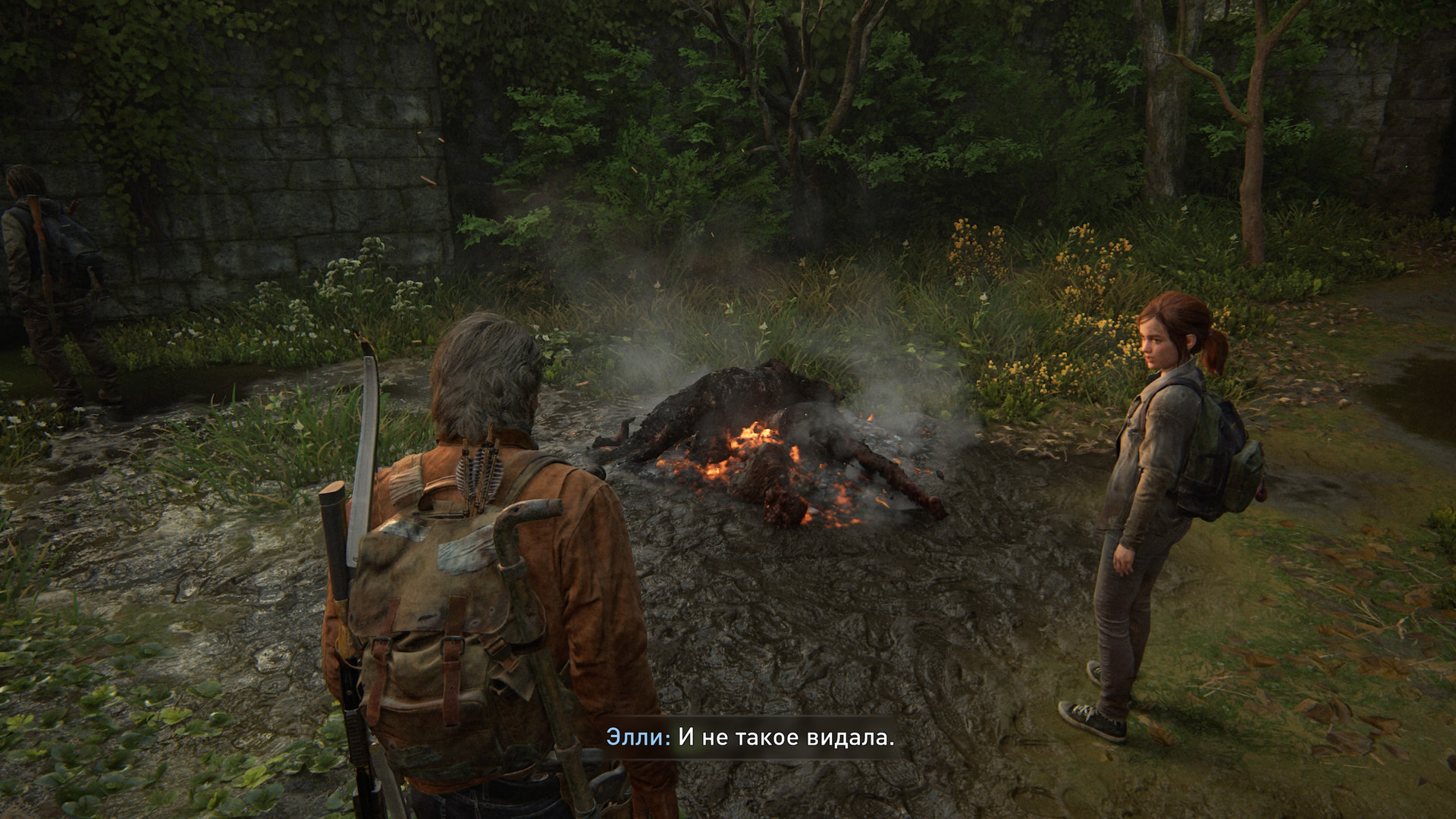 Здесь же можно лицезреть первый момент, когда Элли видит убийство, причем настолько вблизи — будем честны, это не самый лучший жизненный опыт, который может испытать девочка 13-ти лет. Безусловно, речь идет о суровом постапокалиптичном мире, однако подобное совершенно точно не проходит бесследно для психики героини.