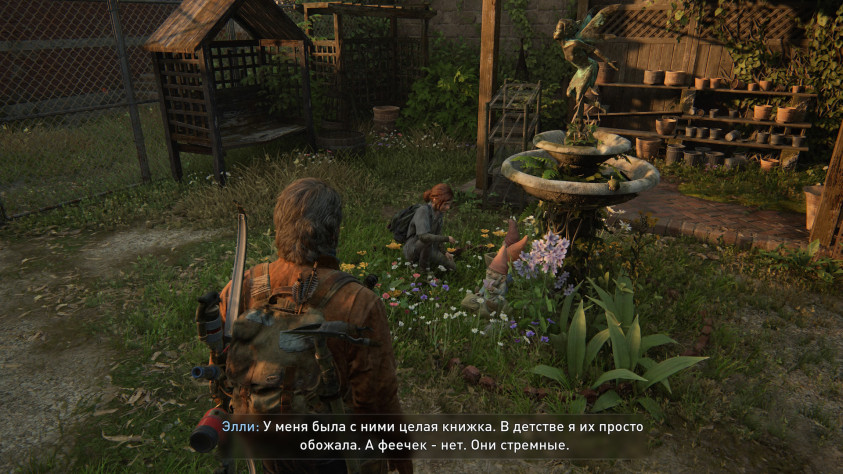 Сейчас же важно подметить, что это, пожалуй, первый раз за всю предысторию Элли, когда она действительно чувствует себя ребенком. Героини, как настоящие дети, играют, шутят, дурачатся — одним словом, проводят время так, как и положено людям их возраста. Иначе говоря, находятся в редком моменте, когда «дети могут побыть детьми» в жестоком мире The Last of Us, выражаясь словами Дракманна.