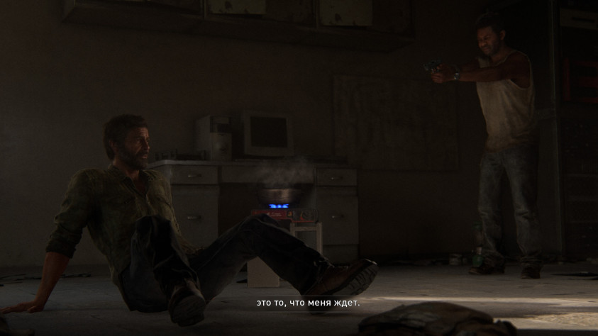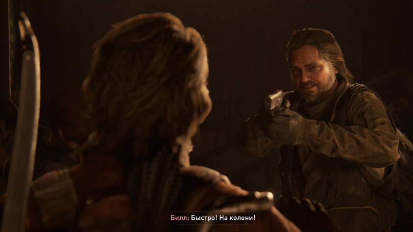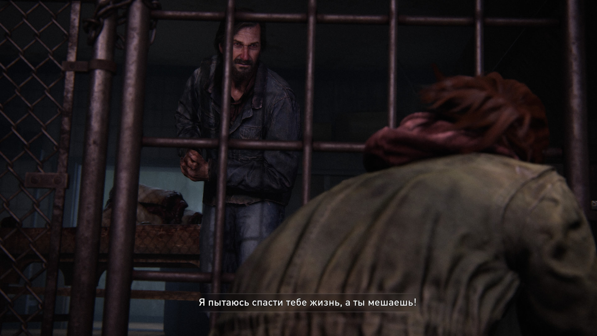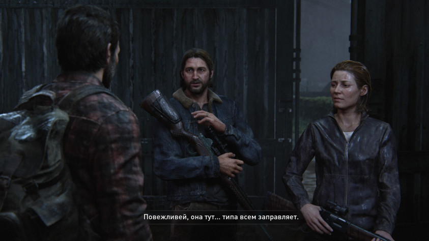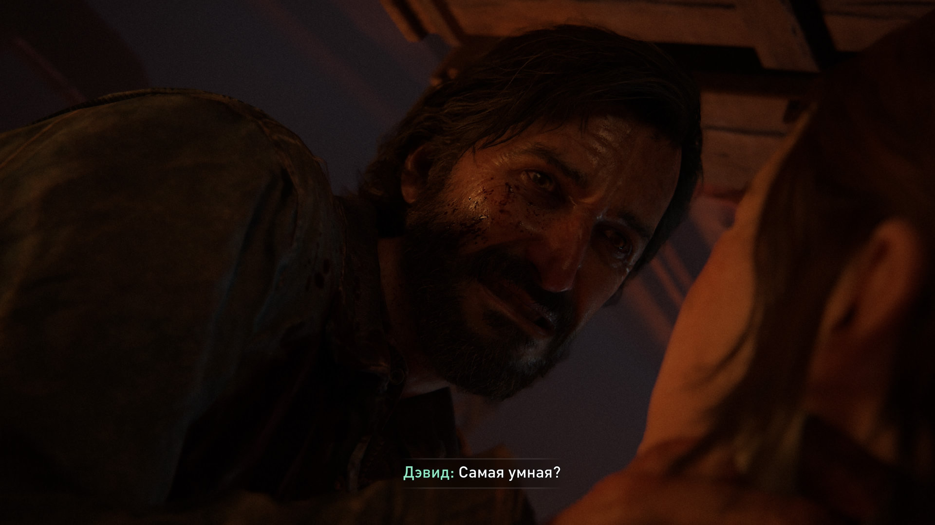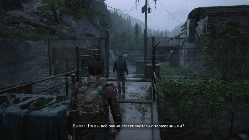 Контрабандисты достаточно быстро смекают, что Элли заражена кордицепсом, и на этой сцене стоит остановиться поподробней. Во-первых, Джоэл и Тесс без тени сожаления наставили на девочку оружие, будучи готовы убить ее на месте. Подобная хладнокровность не осуждается мной. Я лишь подмечаю, что дуэт героев, скорее всего, давно переступил грань, после которой гуманистические представления были отринуты в пользу бескомпромиссного прагматизма. Ничто не доказывает эффективность такого подхода, как-то, что Джоэл и Тесс смогли дожить до текущего момента истории.