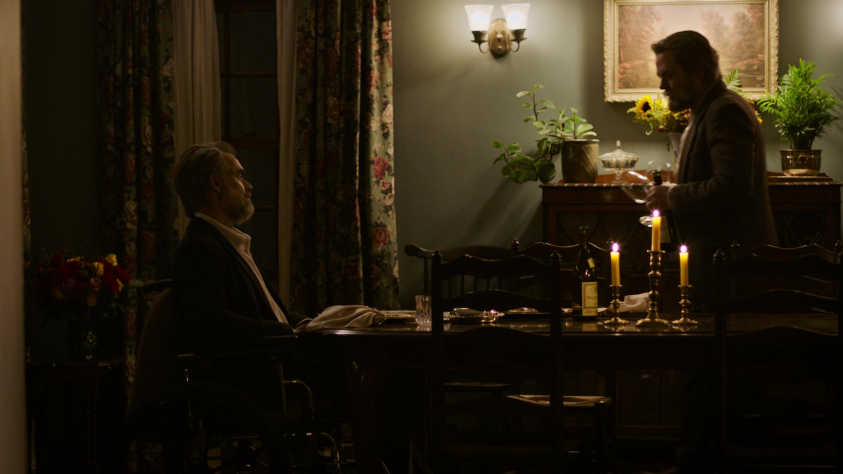 Когда же Джоэл и Тесс все-таки настигают Роберта, который натравил на них своих сообщников, происходит сцена, подчеркивающая, как за эти 20 лет изменился главный герой. Вместе со своей спутницей он начинает допрашивать должника, и по движениям Джоэла в кадре становится ясно, что для него пытать людей — обыденность, к которой за долгие годы, скорее всего, не самых хороших дел, у него выработалось безразличие. Главный герой без тени сомнения ломает Роберту руку в процессе дознания.