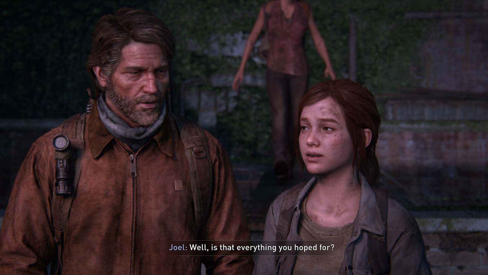 Поэтому финал истории не теряет своей неоднозначности. Джоэл, лишив Элли, как ей тогда казалось, смысла жизни, решает впервые в жизни солгать ей. Главная героиня, научившаяся «считывать» своего отца, понимает, что он врет, но пока не может до конца осознать, в чем этот обман заключается.