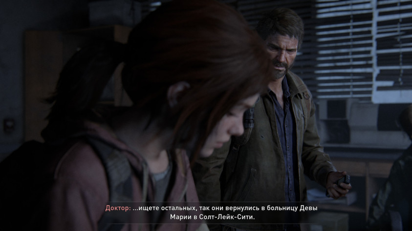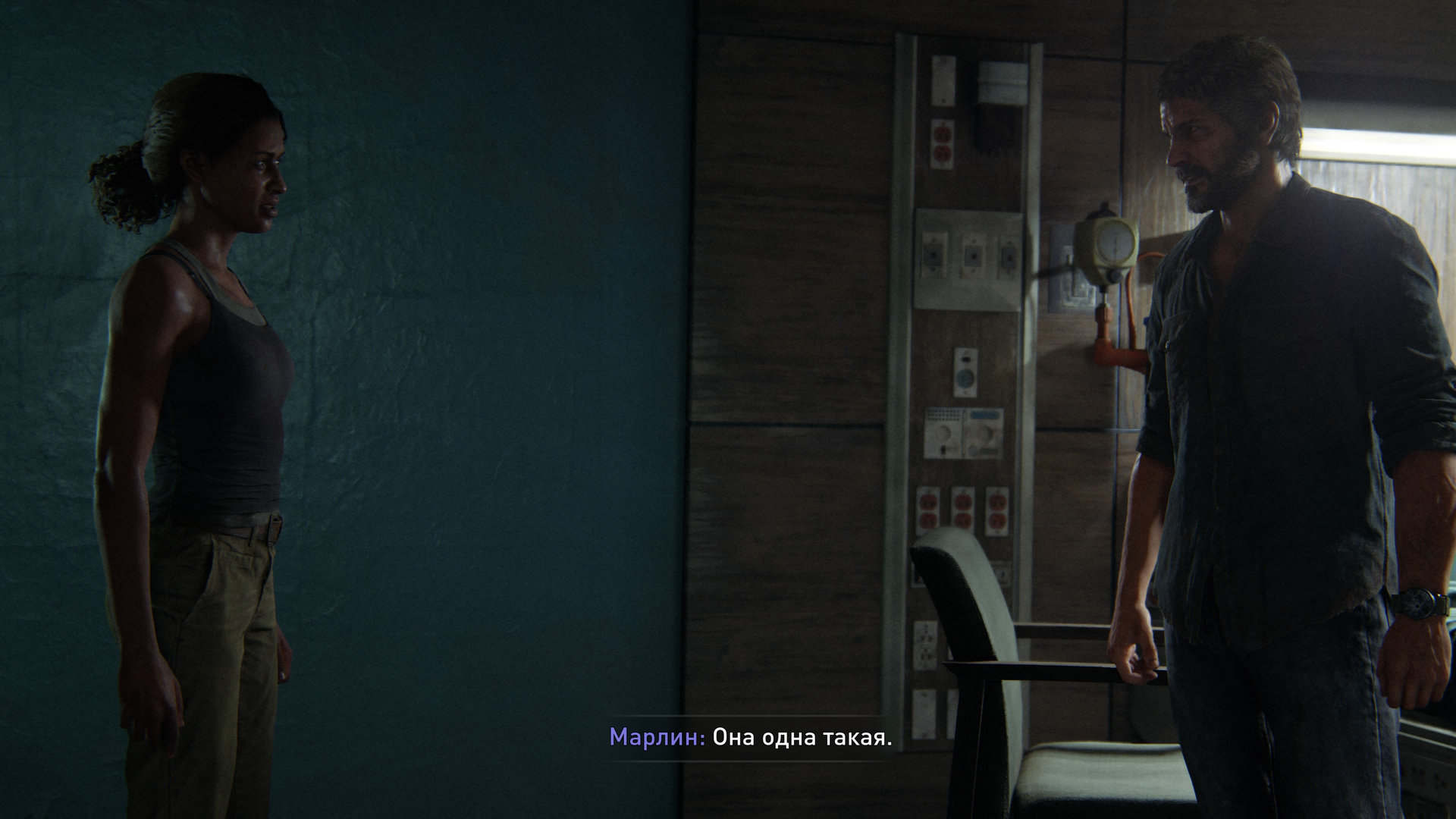 Важно здесь то, что Джоэл совершенно не хочет бередить рану травмирующего прошлого, поэтому воспринимает это предложение в штыки. Что роднит его с Элли, ведь у нее схожая реакция — скорее всего, она успела привязаться к Марлин, которая заменяет ей фигуру матери, поэтому подросток не горит желанием расставаться с близким человеком взамен на 50-ти летнего незнакомого старика и его не вызывающей доверия спутницу.