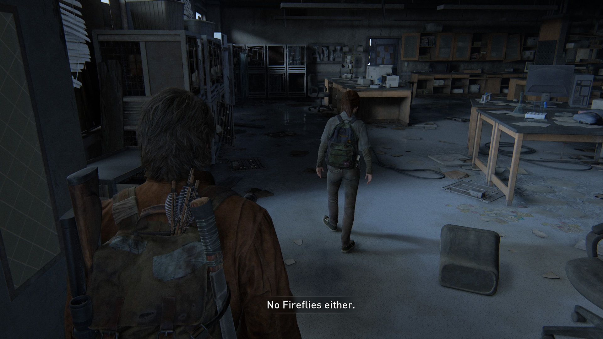 Дойдя до места назначения, Джоэл с Тесс встречаются с уже 14-летней Элли. Главный герой отпускает ироническое замечание, что Марлин начала вербовать несовершеннолетних, однако оказывается, что именно ребенок является тем самым грузом, который необходимо доставить за пределы карантинной зоны другому отряду Цикад. К слову, здесь в разговоре с Марлин мелькает имя «Томми» — брат главного героя, как оказывается, пробыл некоторое время в строю Светлячков.